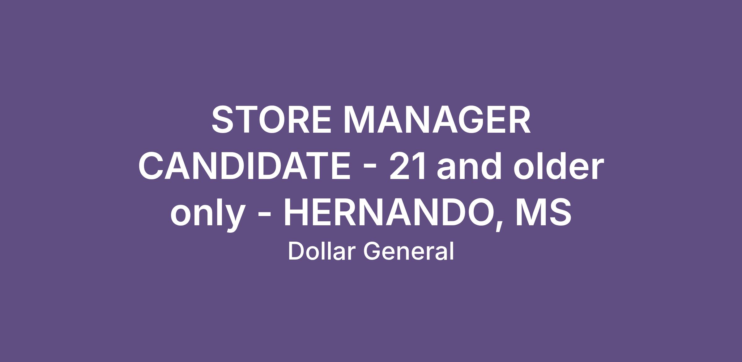 STORE MANAGER CANDIDATE - 21 and older only - HERNANDO, MS