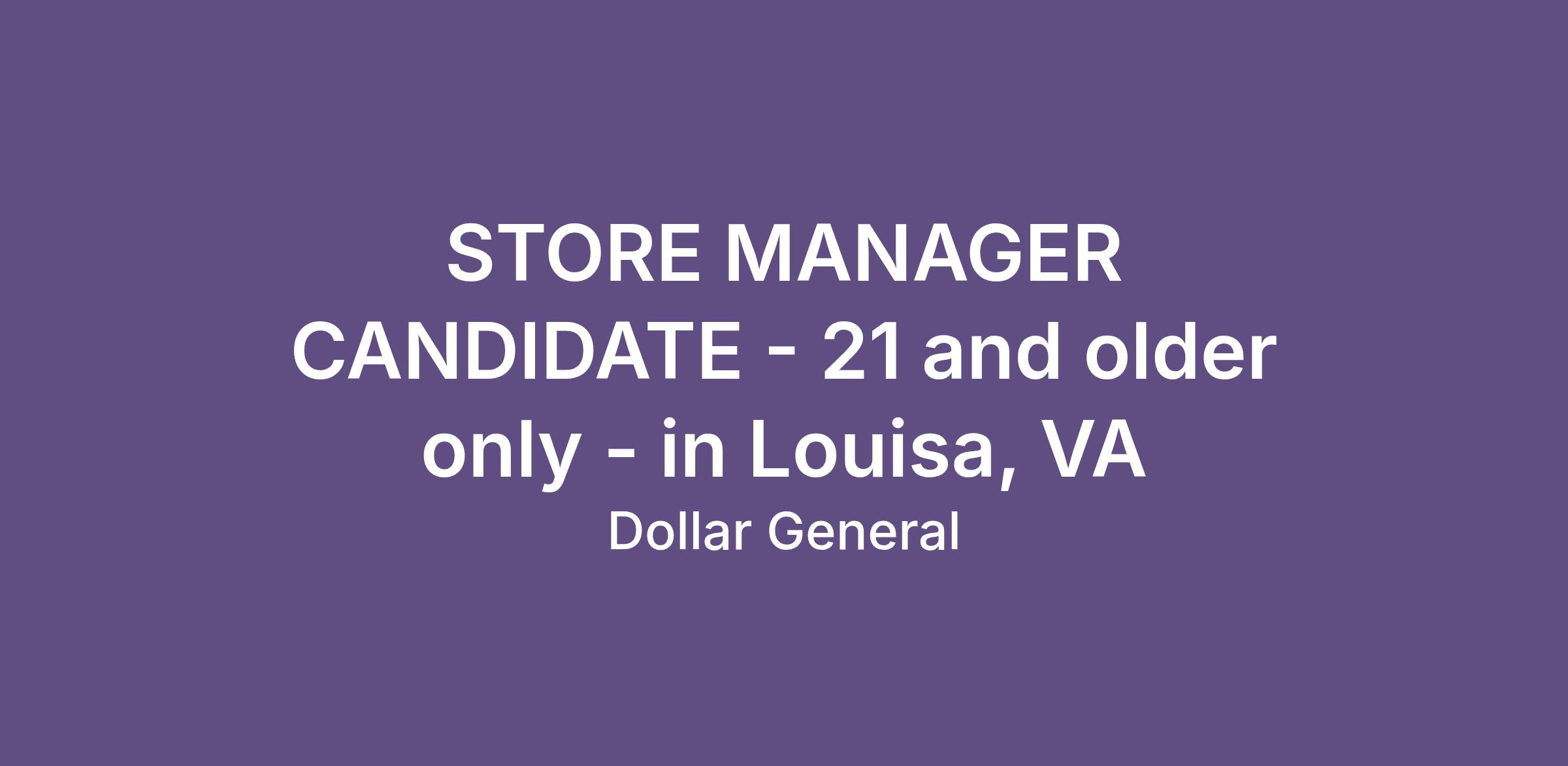 STORE MANAGER CANDIDATE - 21 and older only - in Louisa, VA