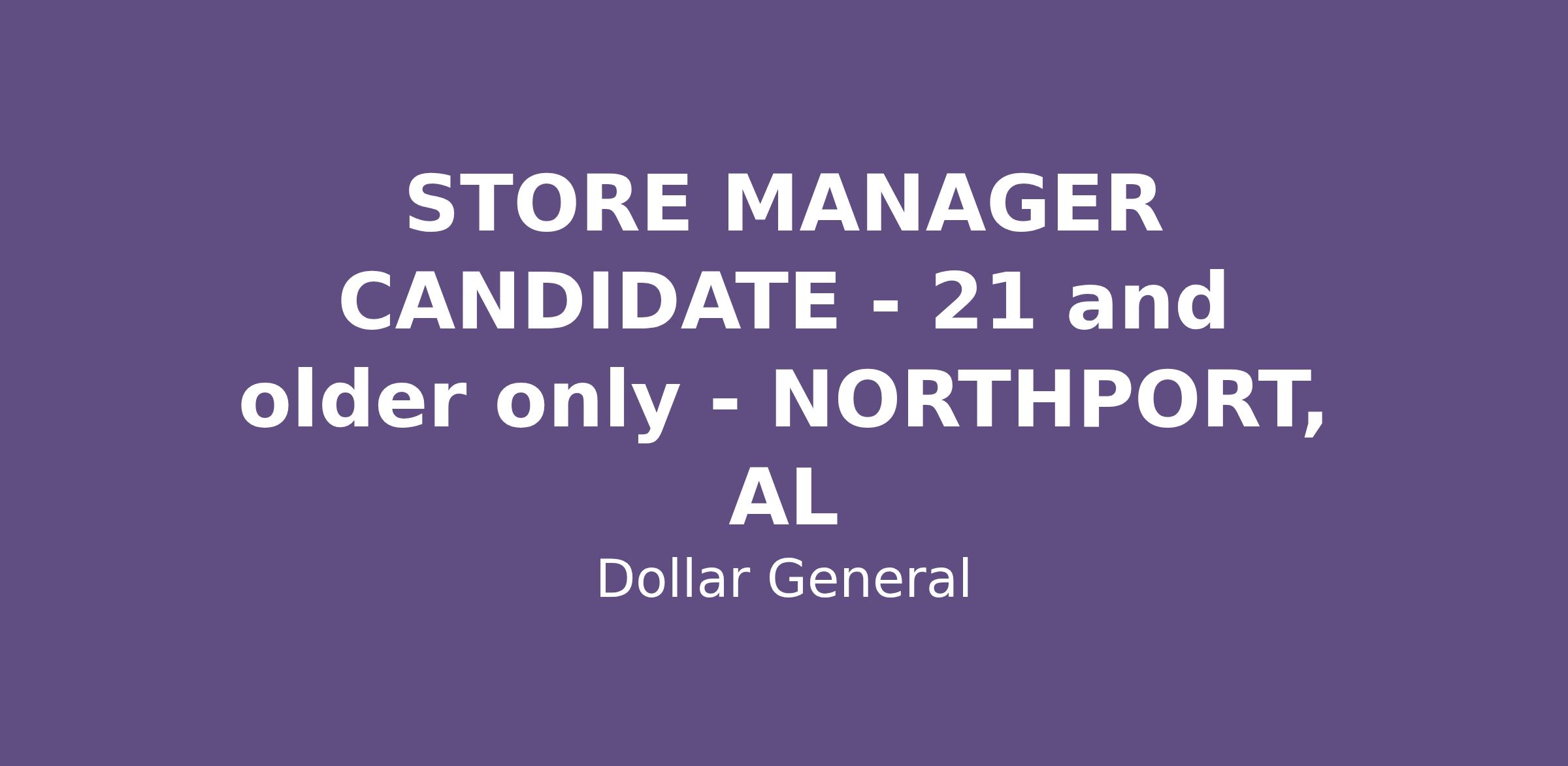 STORE MANAGER CANDIDATE - 21 and older only - NORTHPORT, AL