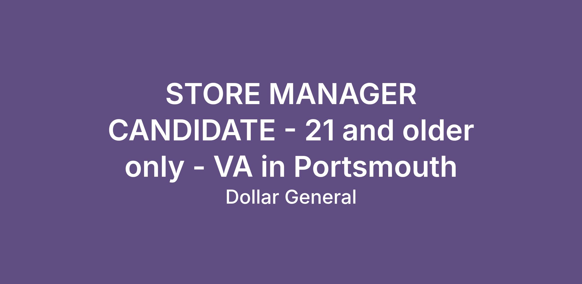 STORE MANAGER CANDIDATE - 21 and older only - VA in Portsmouth