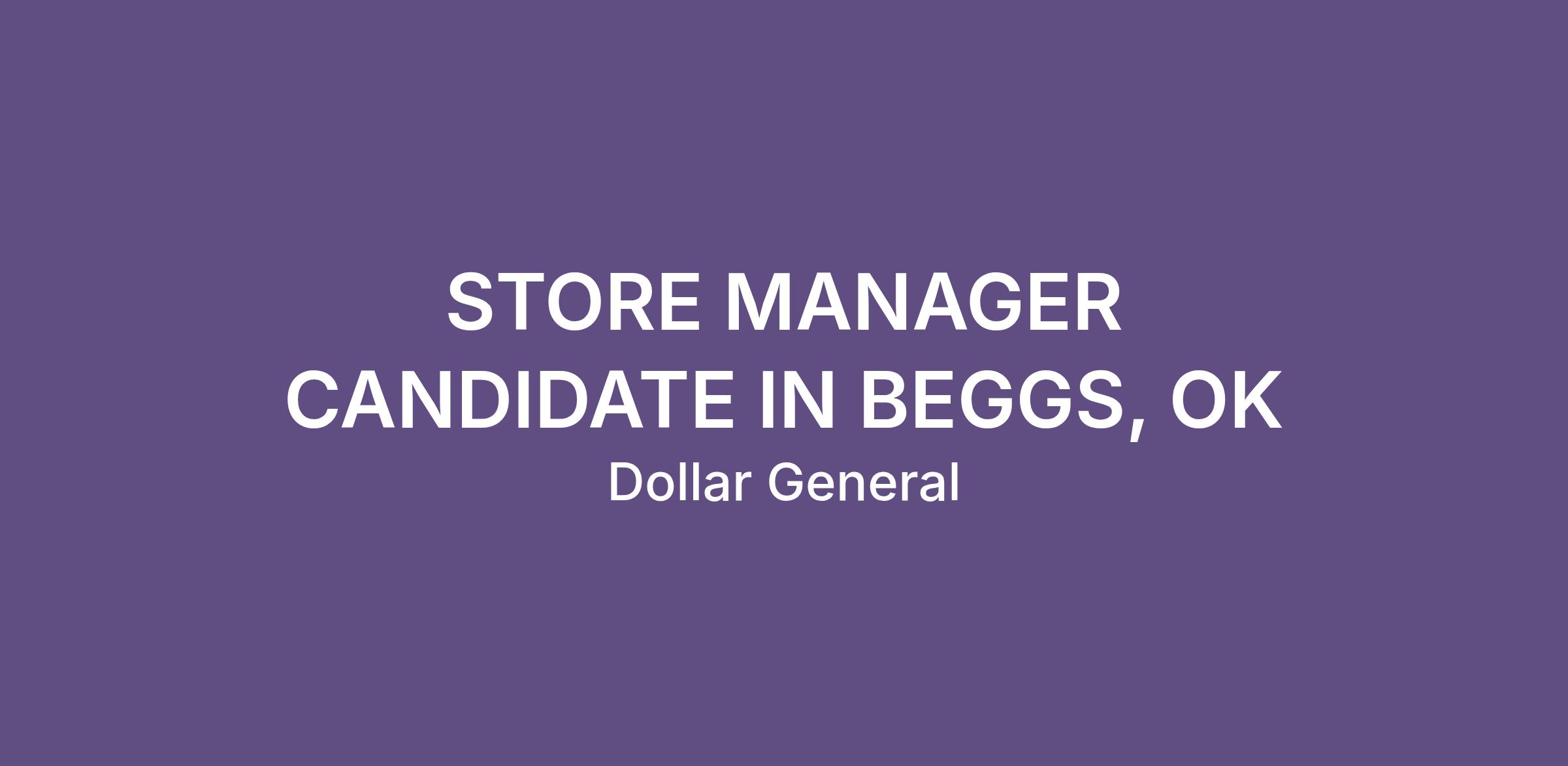 STORE MANAGER CANDIDATE IN BEGGS, OK