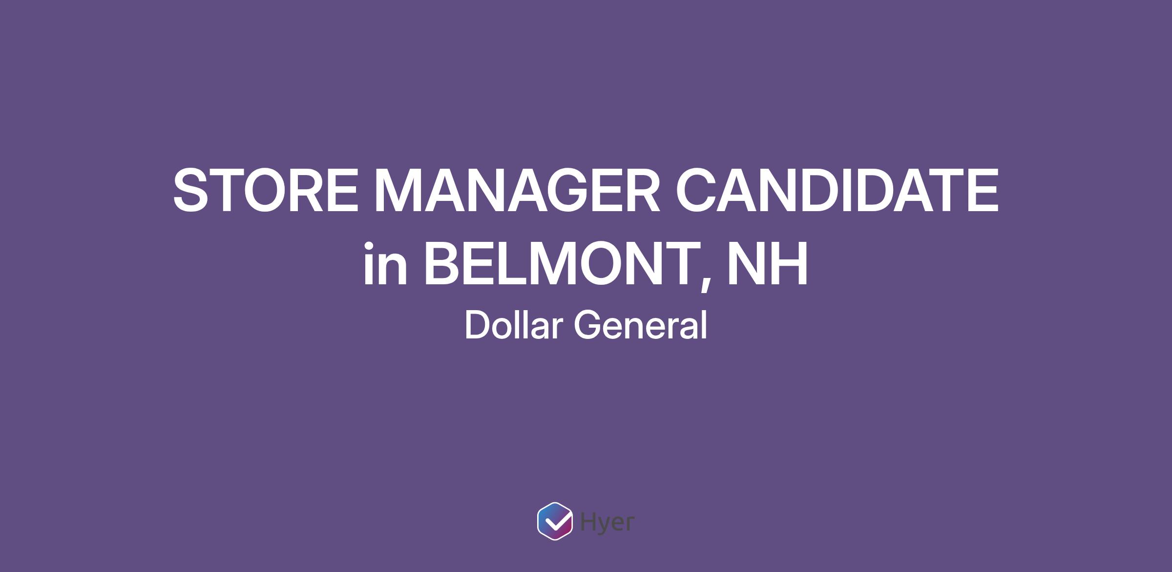 STORE MANAGER CANDIDATE in BELMONT, NH