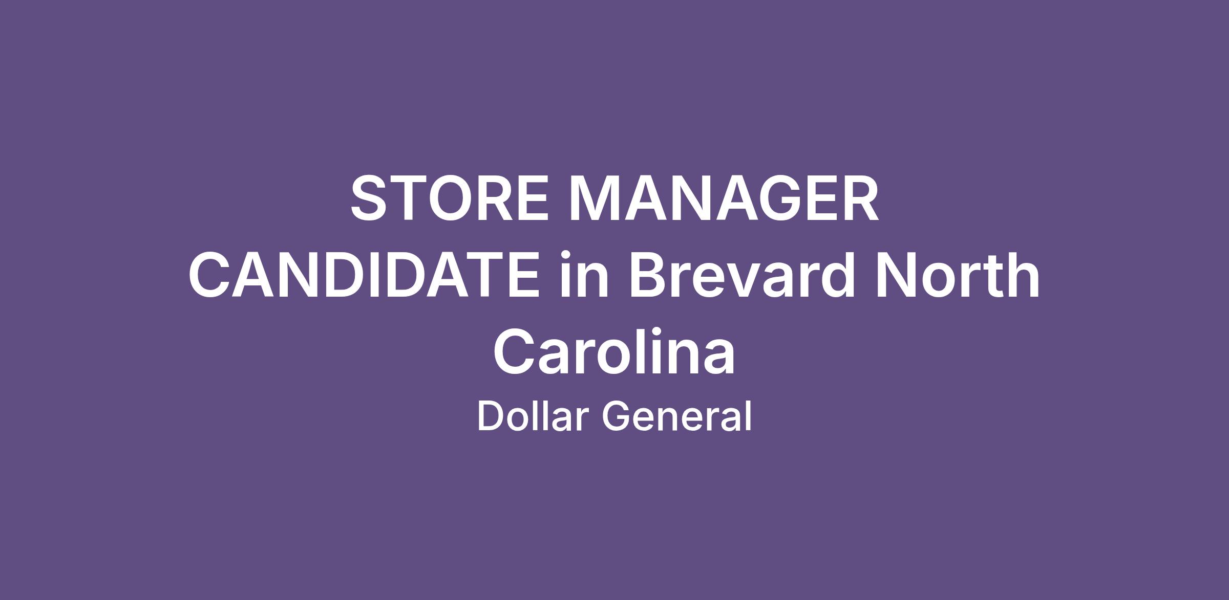 STORE MANAGER CANDIDATE in Brevard North Carolina