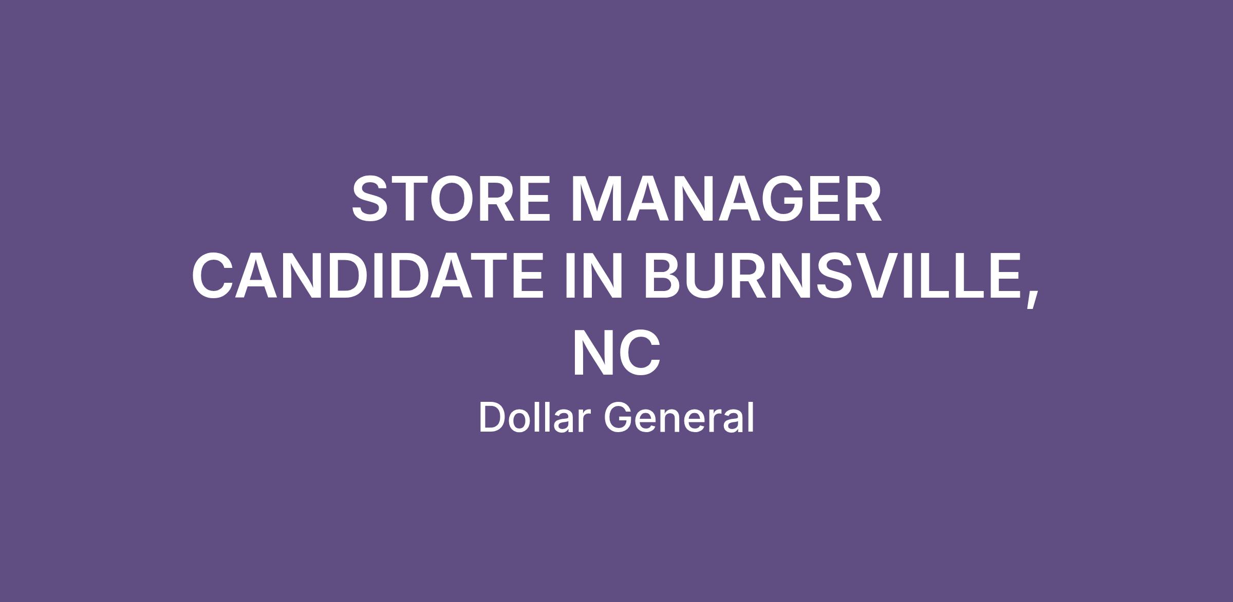 STORE MANAGER CANDIDATE IN BURNSVILLE, NC