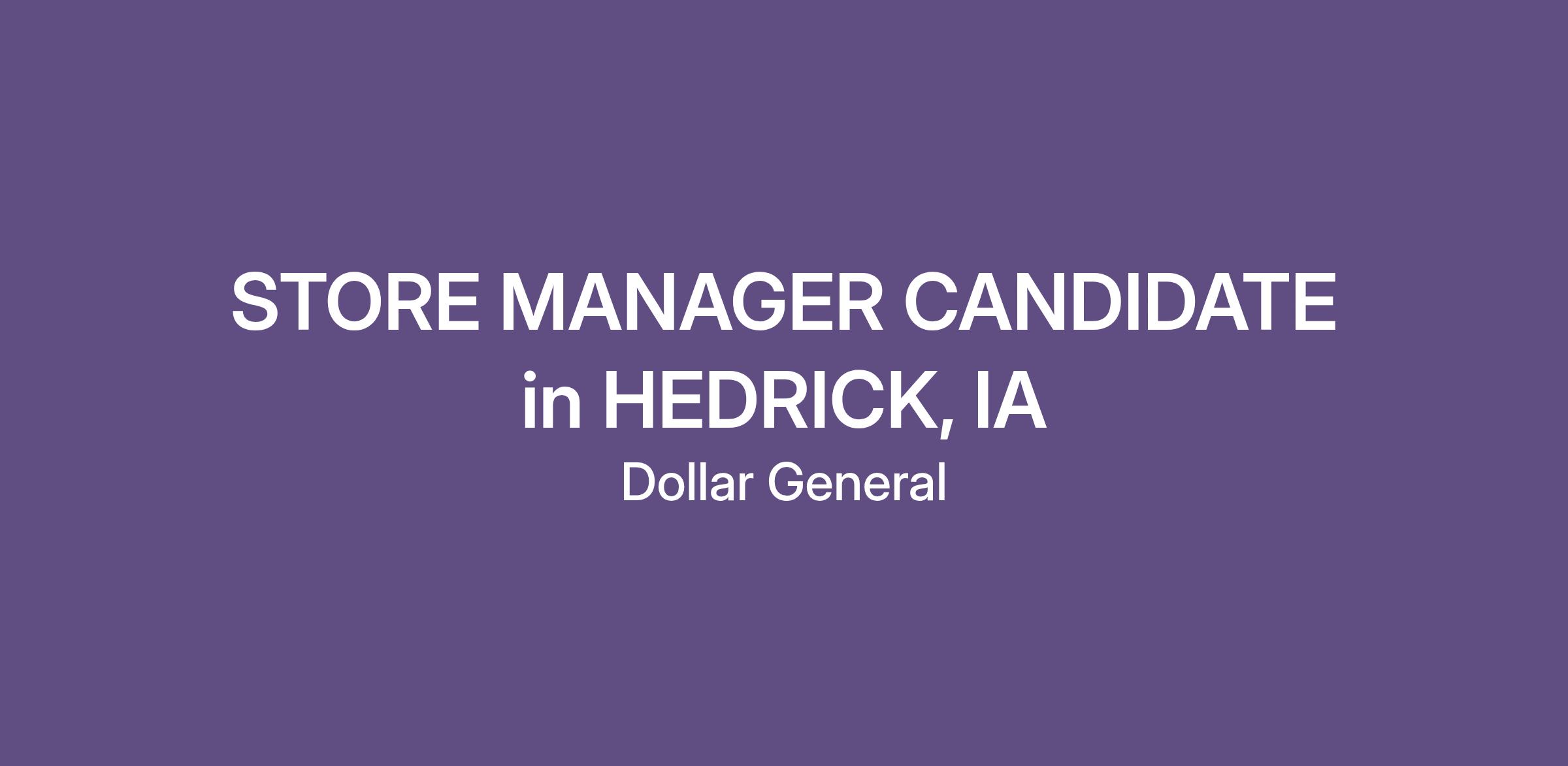 STORE MANAGER CANDIDATE in HEDRICK, IA