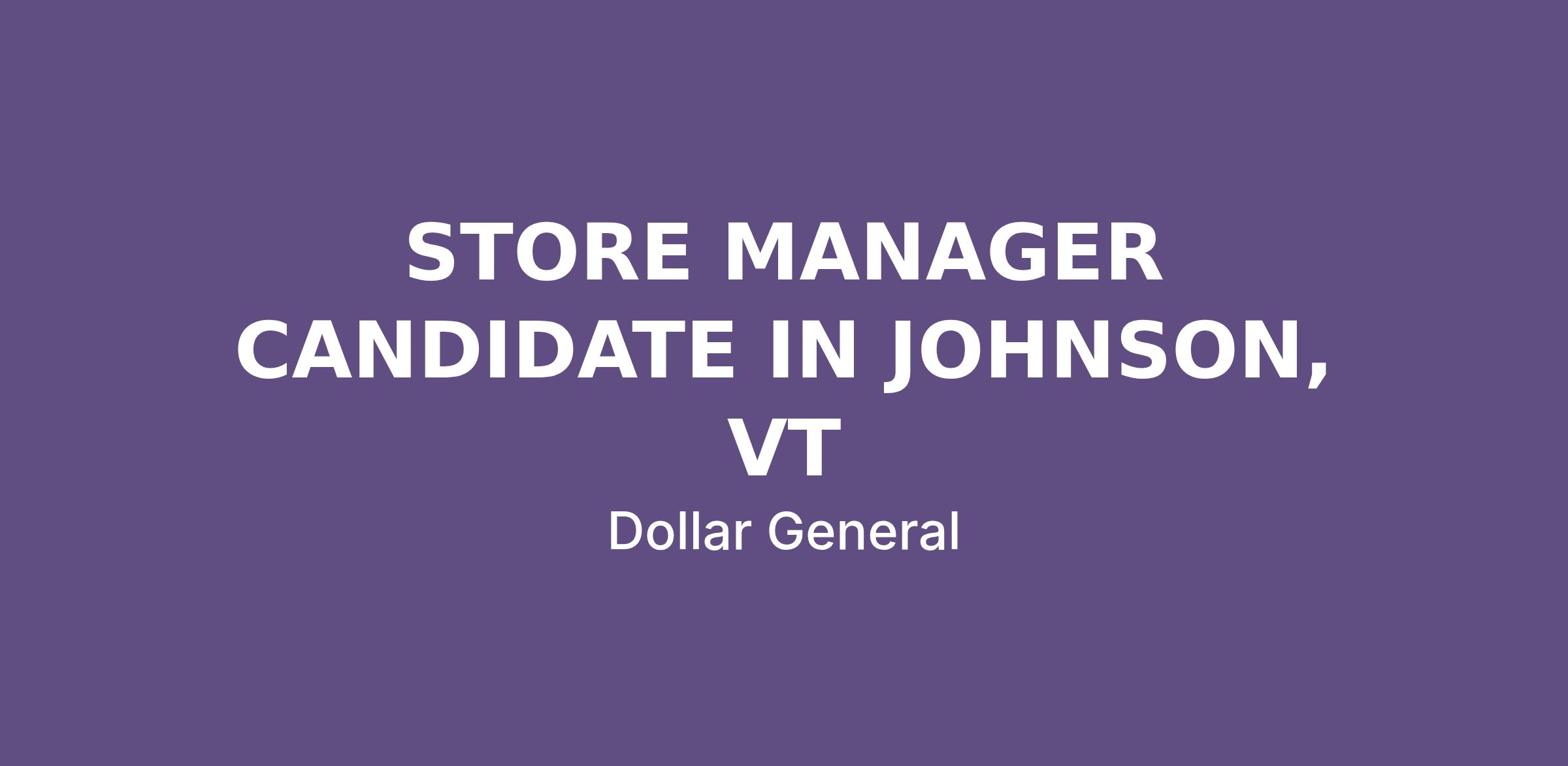 STORE MANAGER CANDIDATE IN JOHNSON, VT