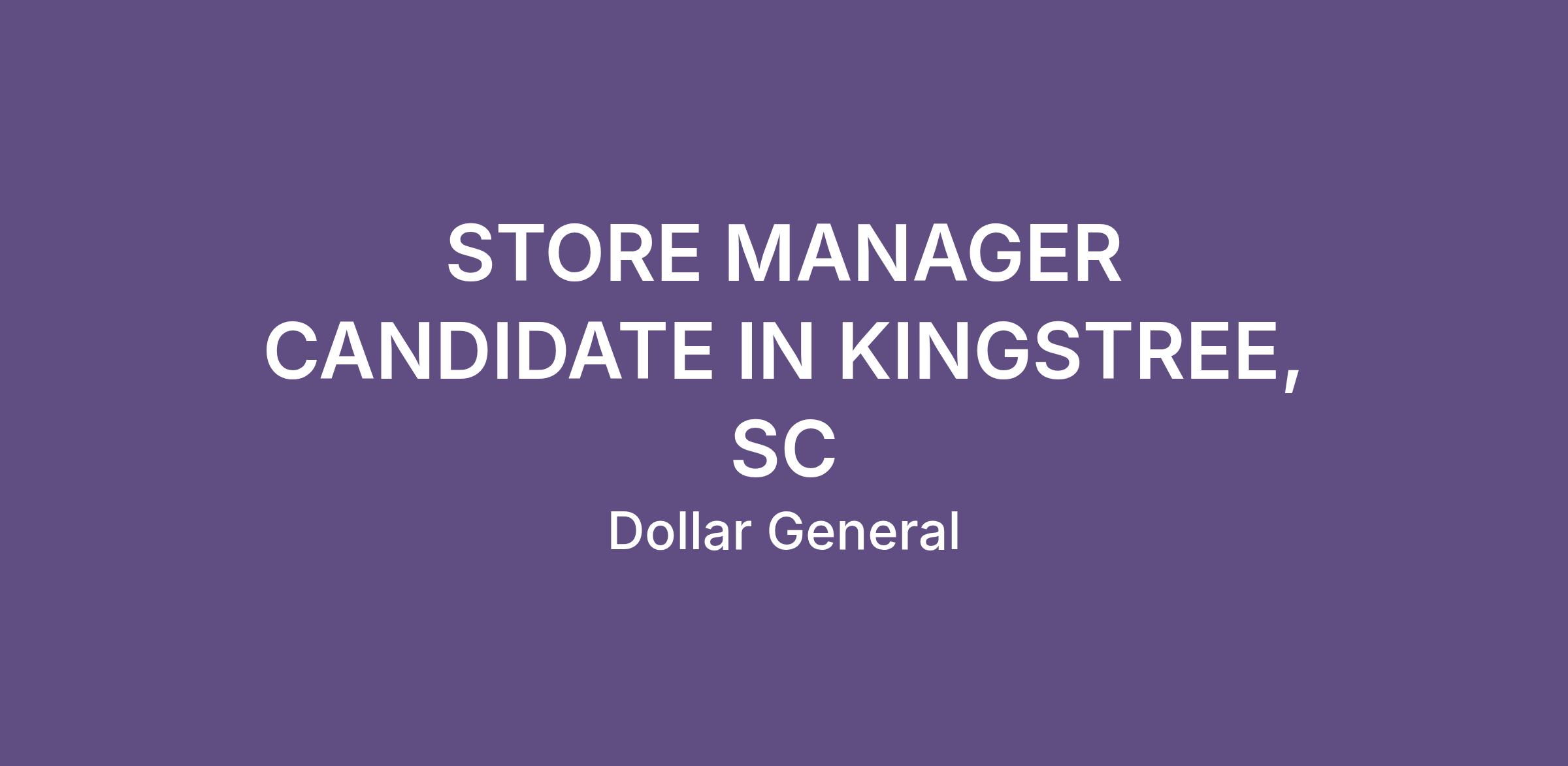STORE MANAGER CANDIDATE IN KINGSTREE, SC