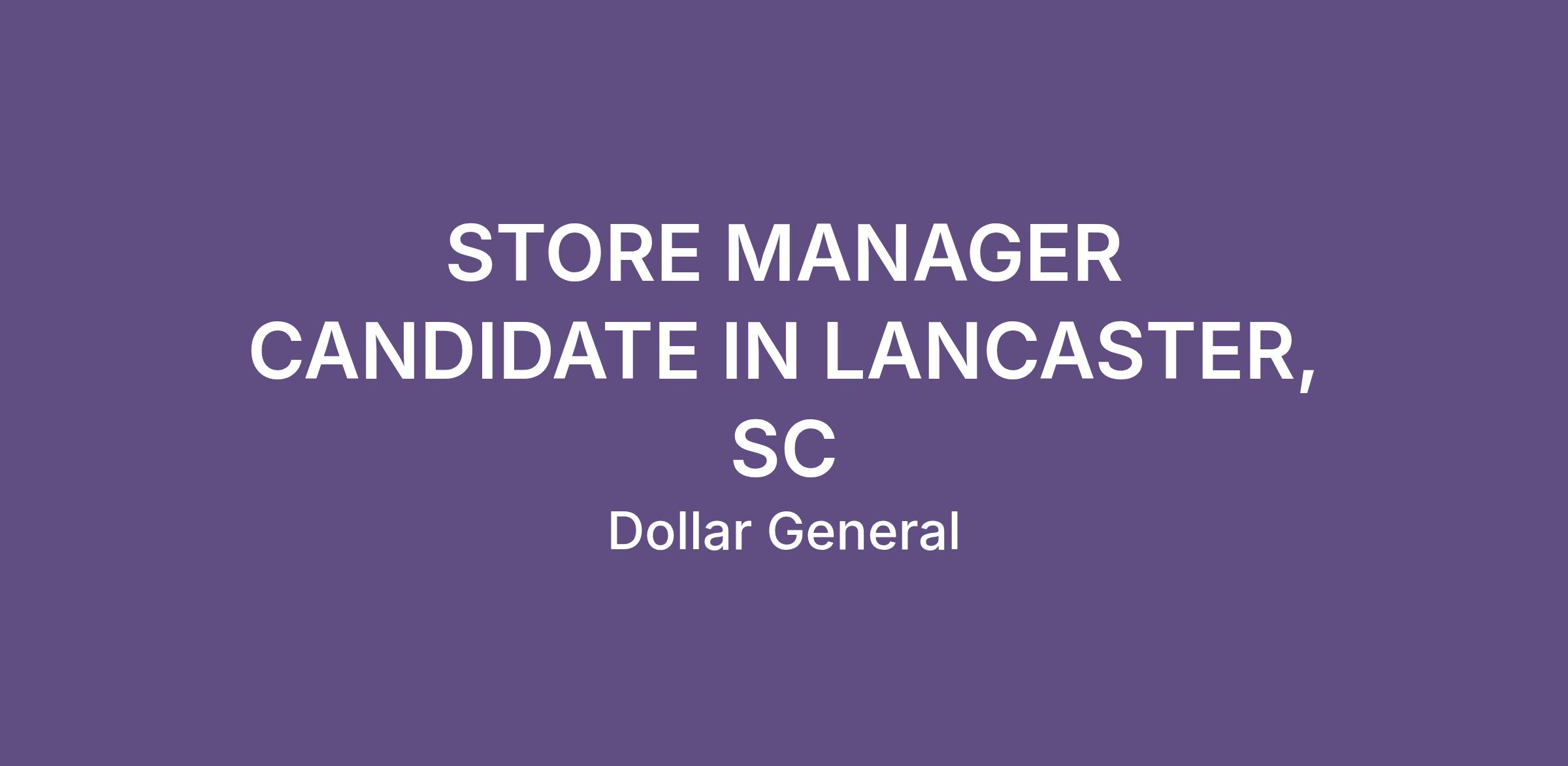 STORE MANAGER CANDIDATE IN LANCASTER, SC