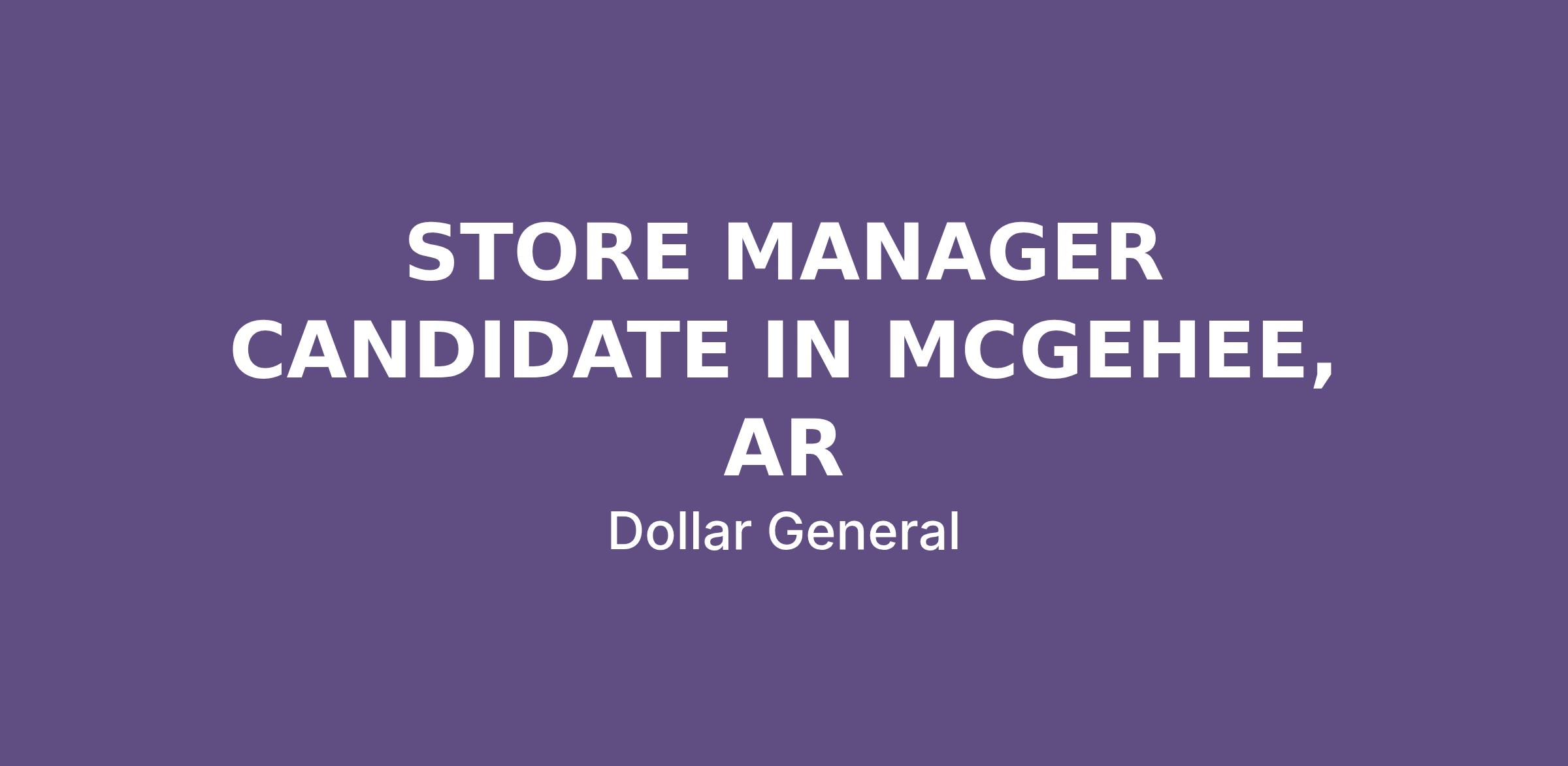 STORE MANAGER CANDIDATE IN MCGEHEE, AR