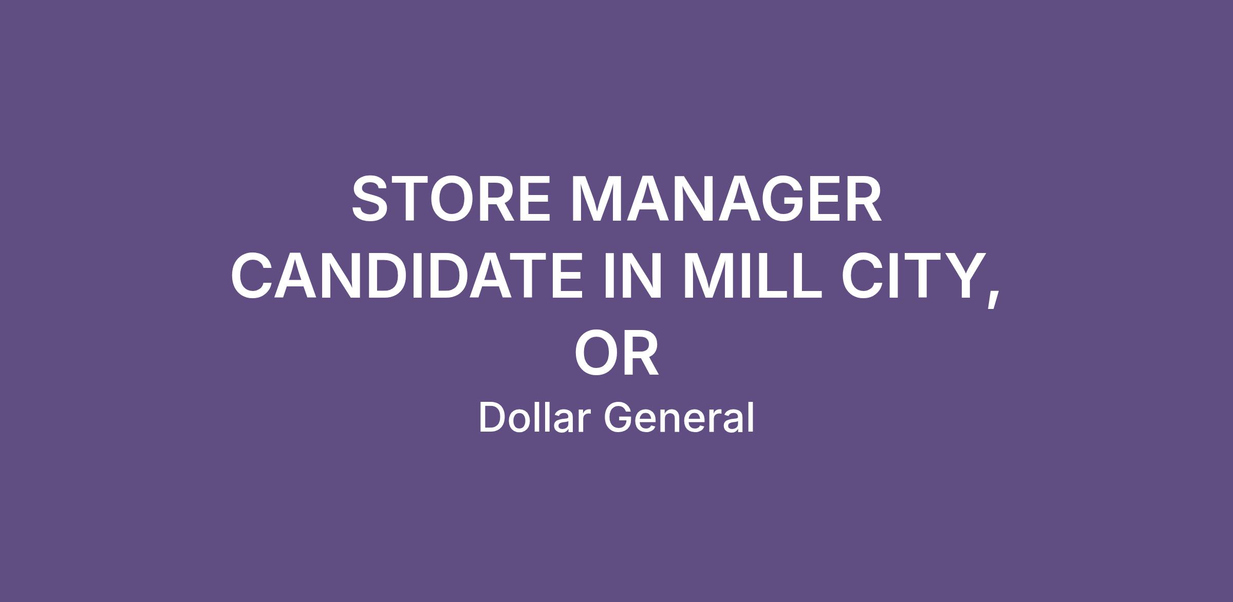 STORE MANAGER CANDIDATE IN MILL CITY, OR