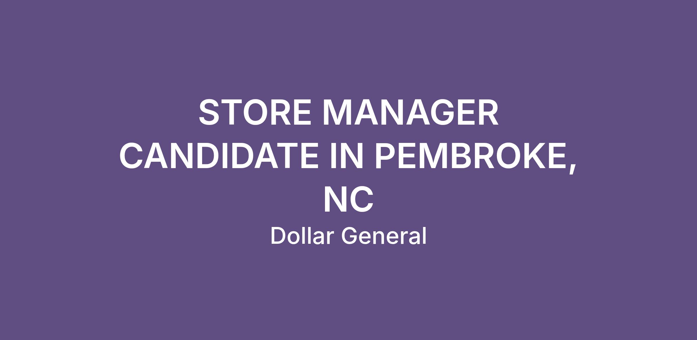 STORE MANAGER CANDIDATE IN PEMBROKE, NC
