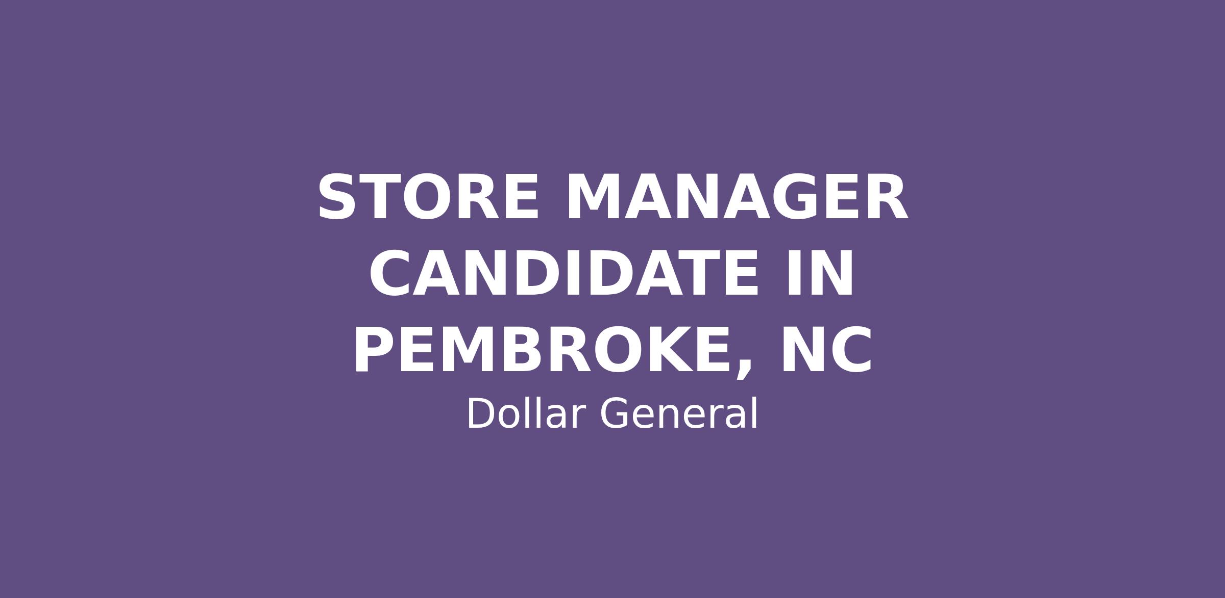 STORE MANAGER CANDIDATE IN PEMBROKE, NC