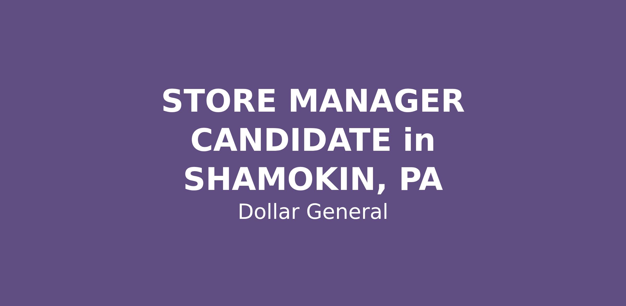 STORE MANAGER CANDIDATE in SHAMOKIN, PA