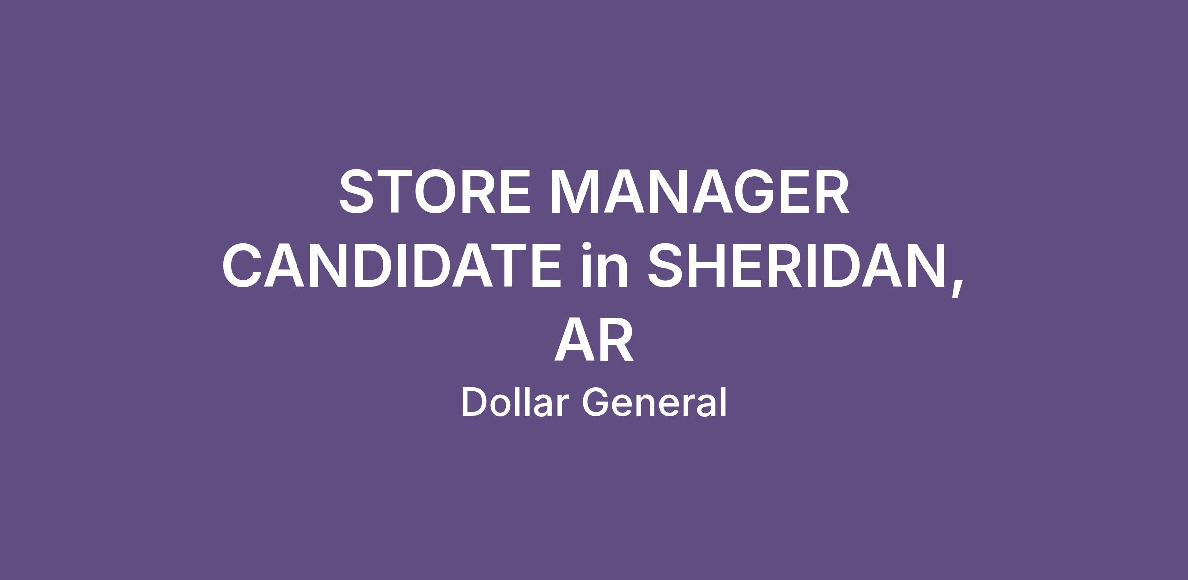 STORE MANAGER CANDIDATE in SHERIDAN, AR