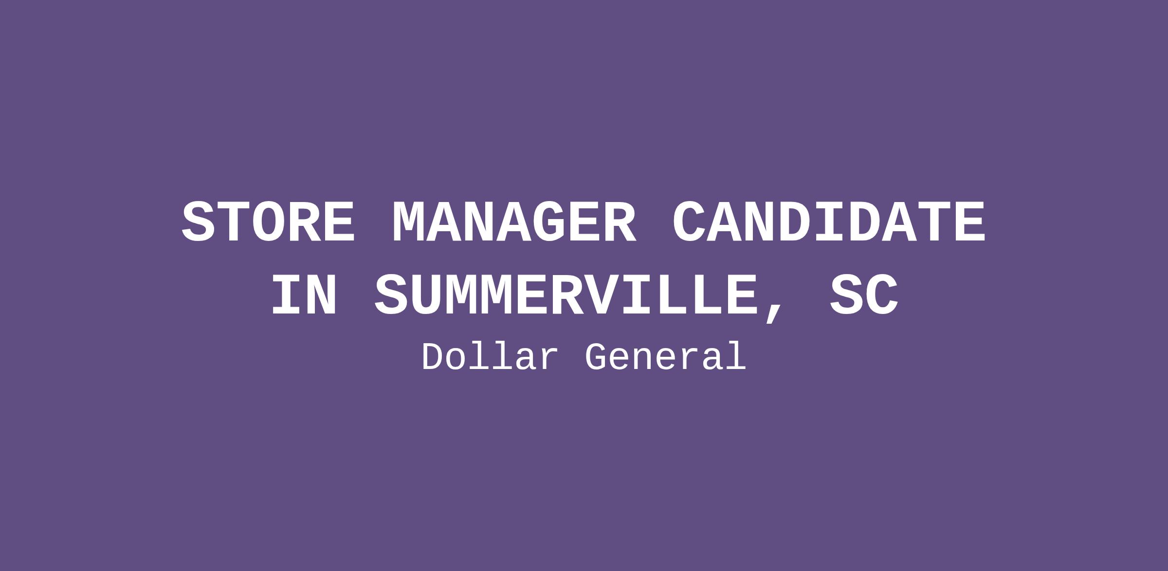 STORE MANAGER CANDIDATE IN SUMMERVILLE, SC