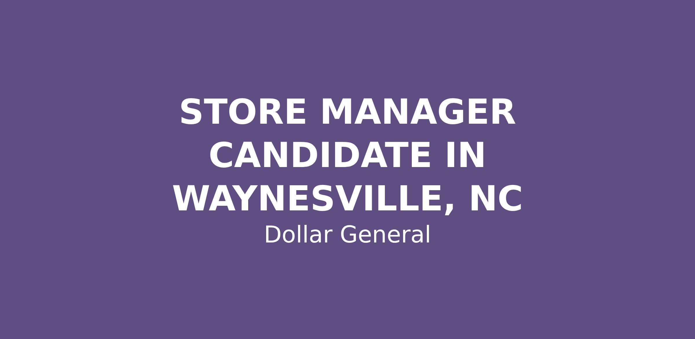 STORE MANAGER CANDIDATE IN WAYNESVILLE, NC