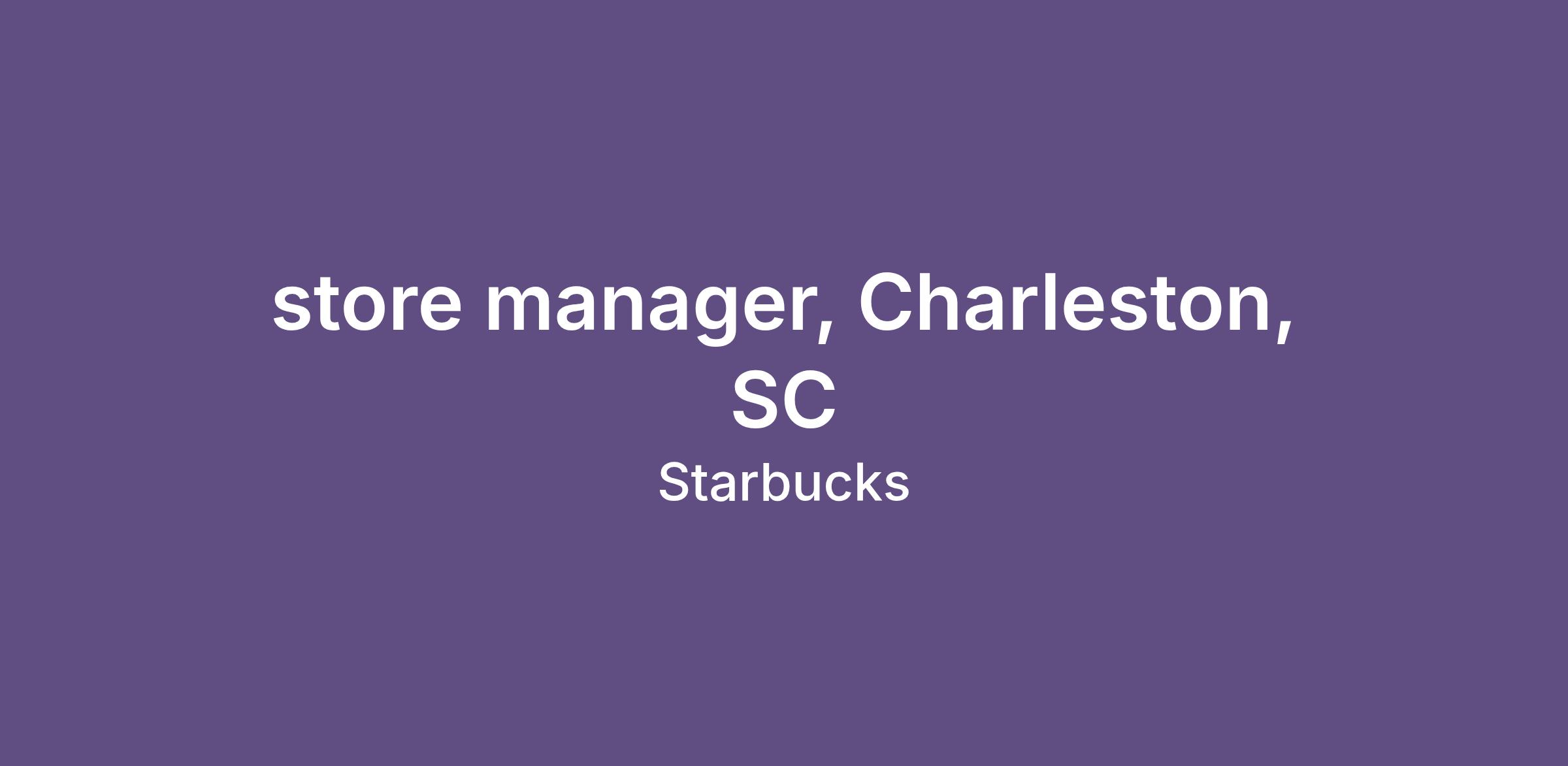 store manager, Charleston, SC