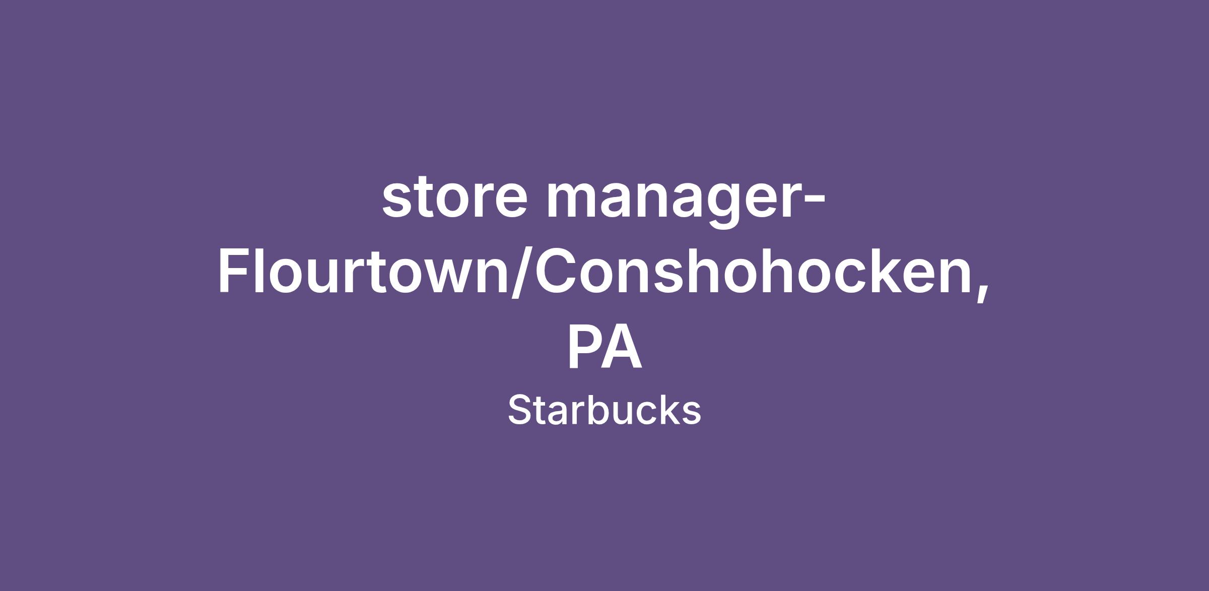 store manager-Flourtown/Conshohocken, PA