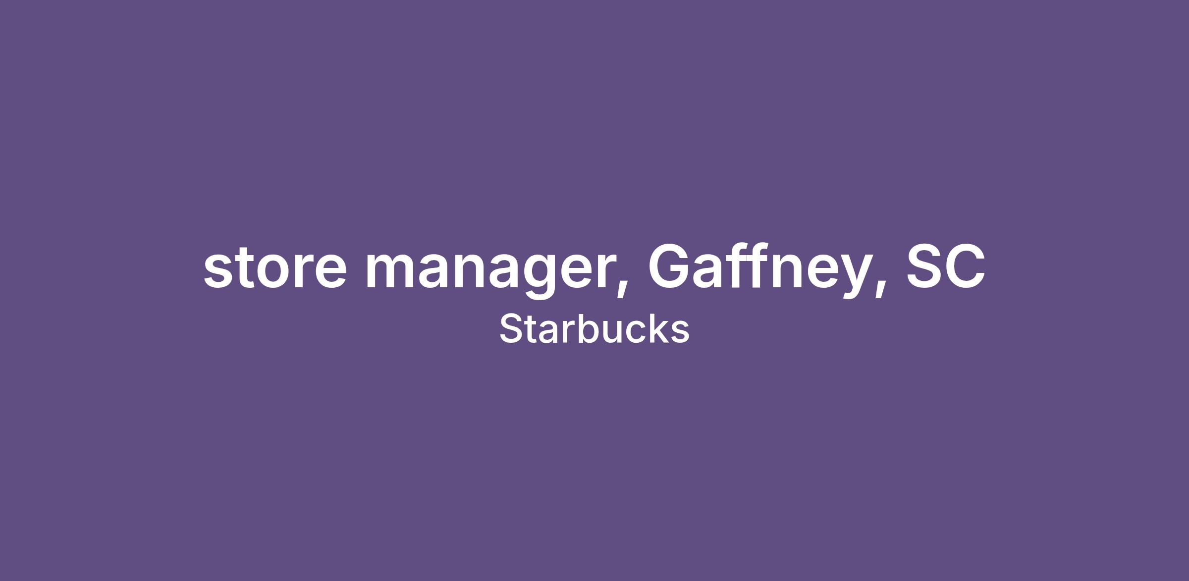store manager, Gaffney, SC