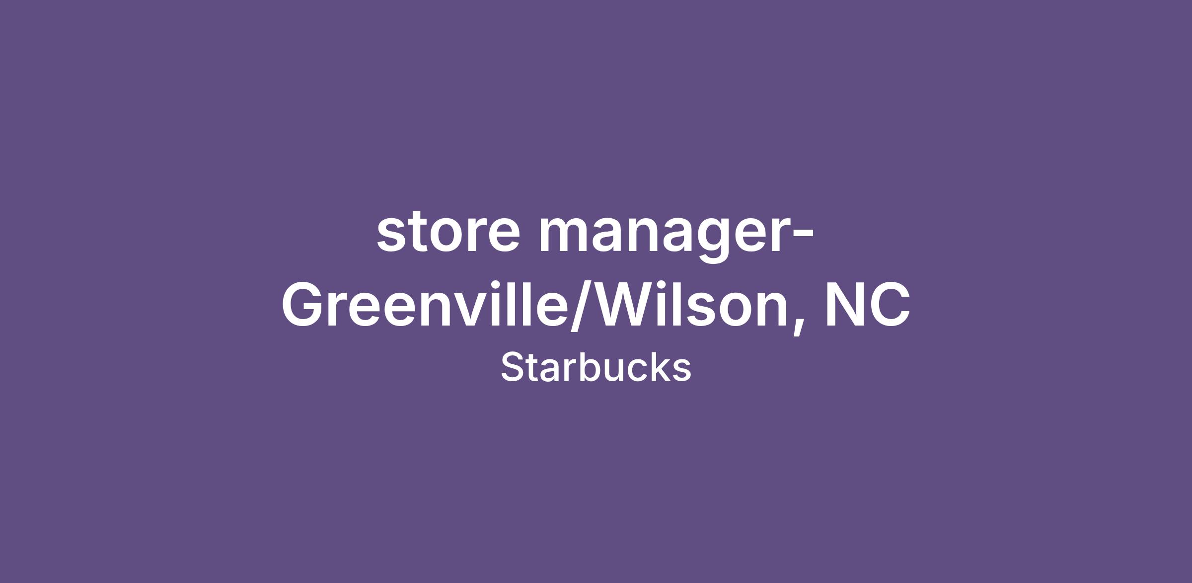 store manager-Greenville/Wilson, NC