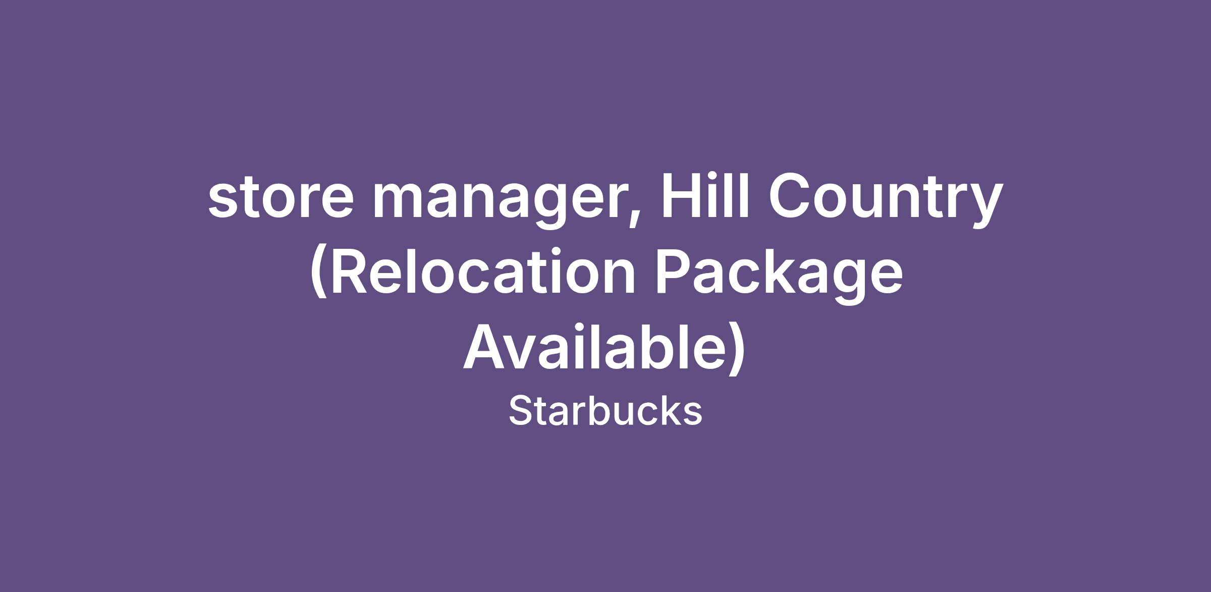 store manager, Hill Country (Relocation Package Available)