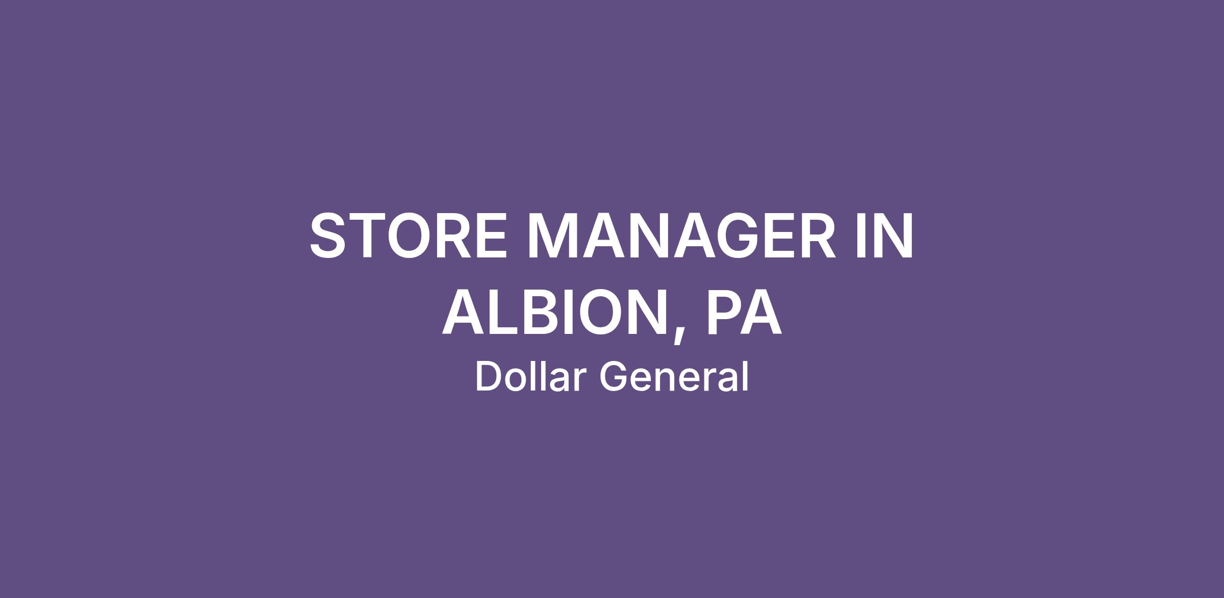 STORE MANAGER IN ALBION, PA