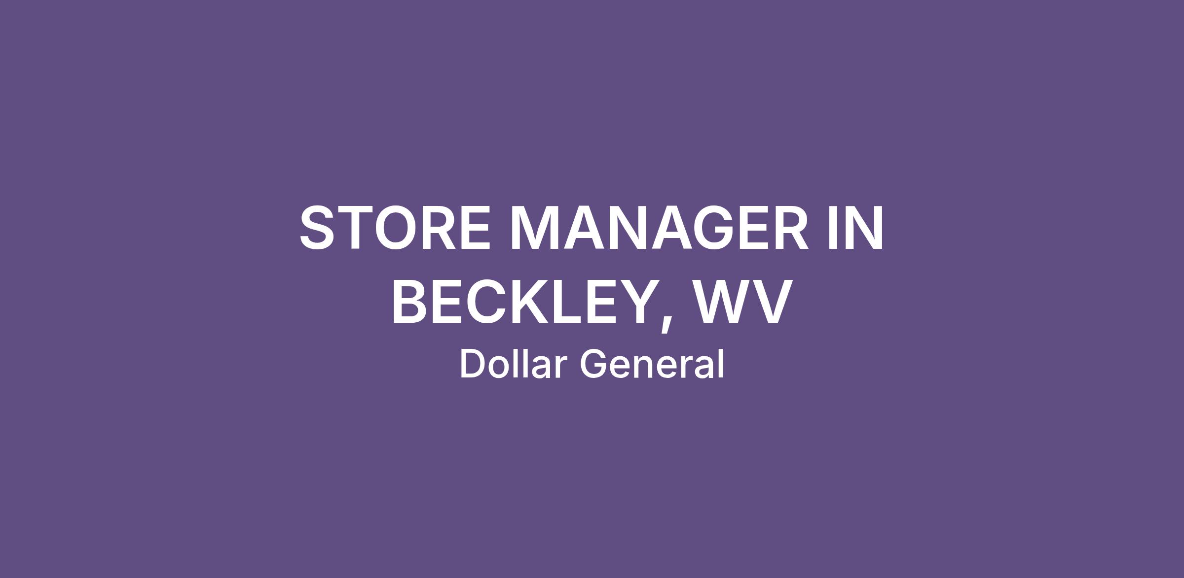 STORE MANAGER IN BECKLEY, WV