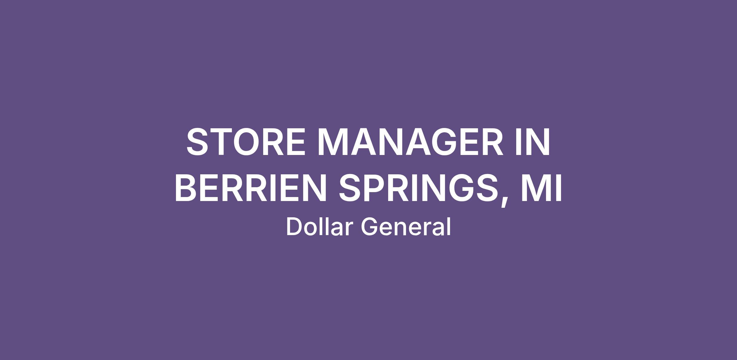 STORE MANAGER IN BERRIEN SPRINGS, MI