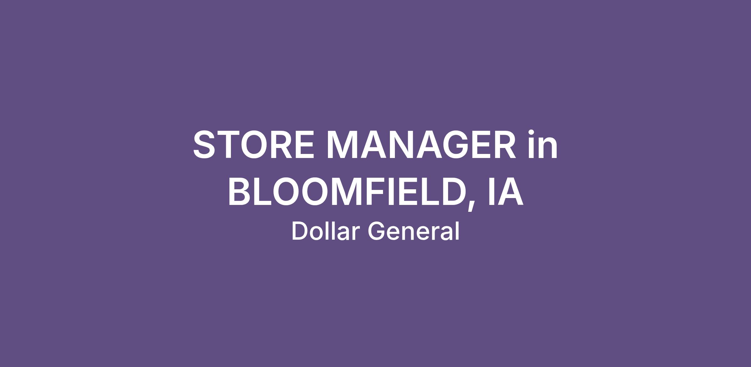 STORE MANAGER in BLOOMFIELD, IA