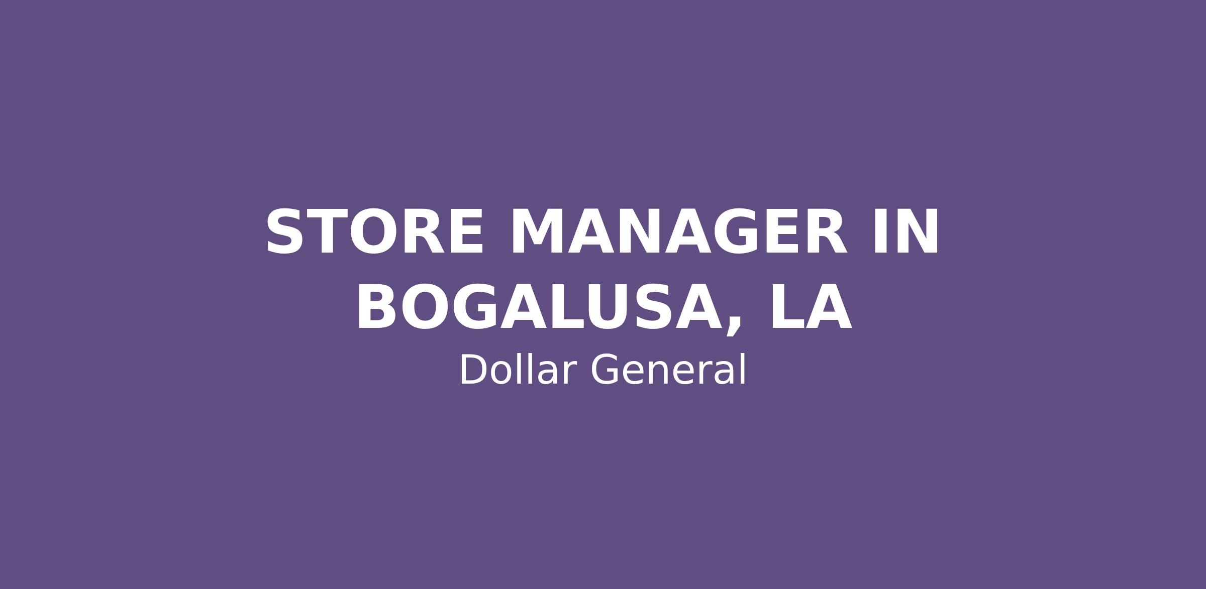 STORE MANAGER IN BOGALUSA, LA