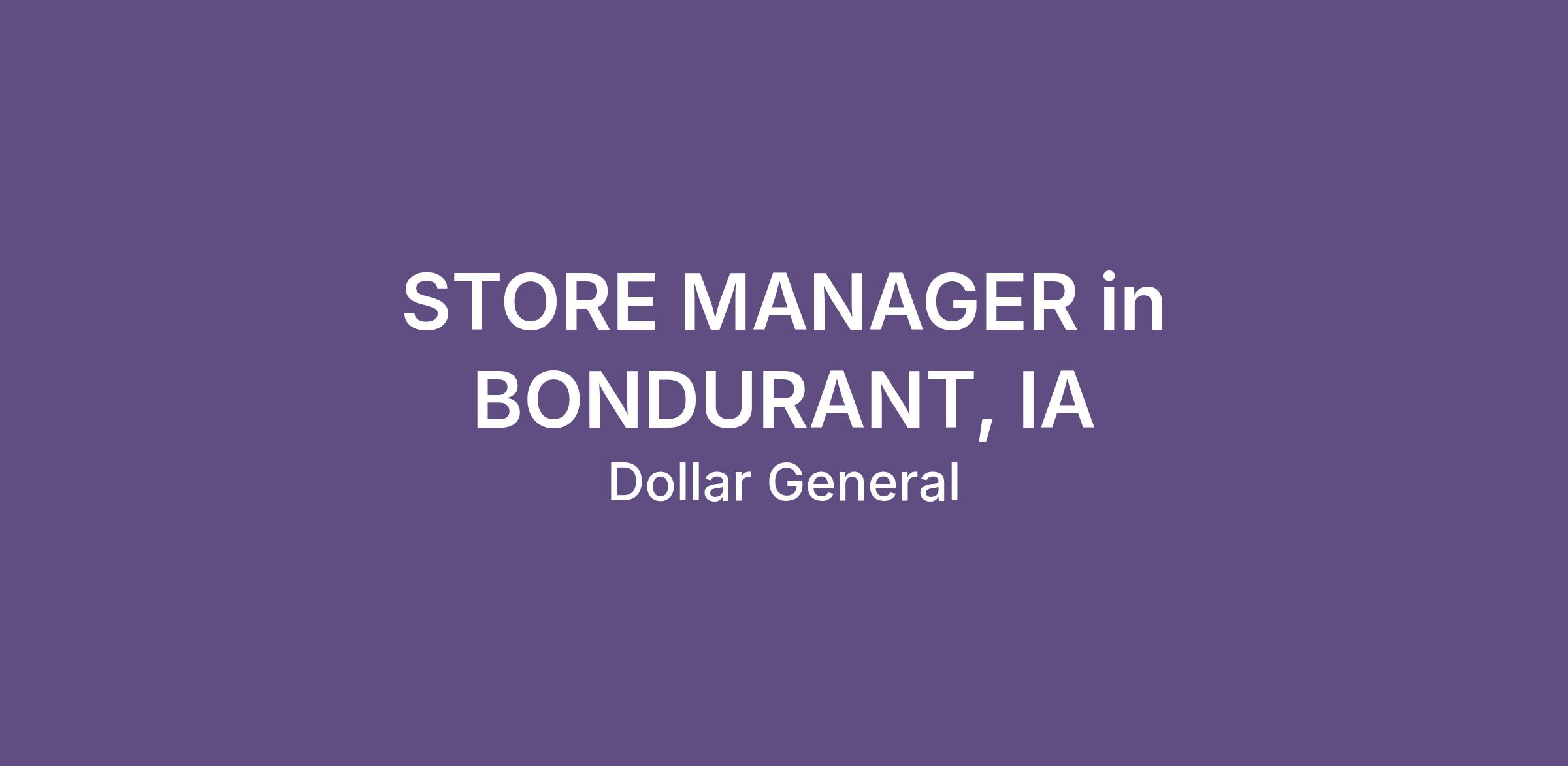 STORE MANAGER in BONDURANT, IA