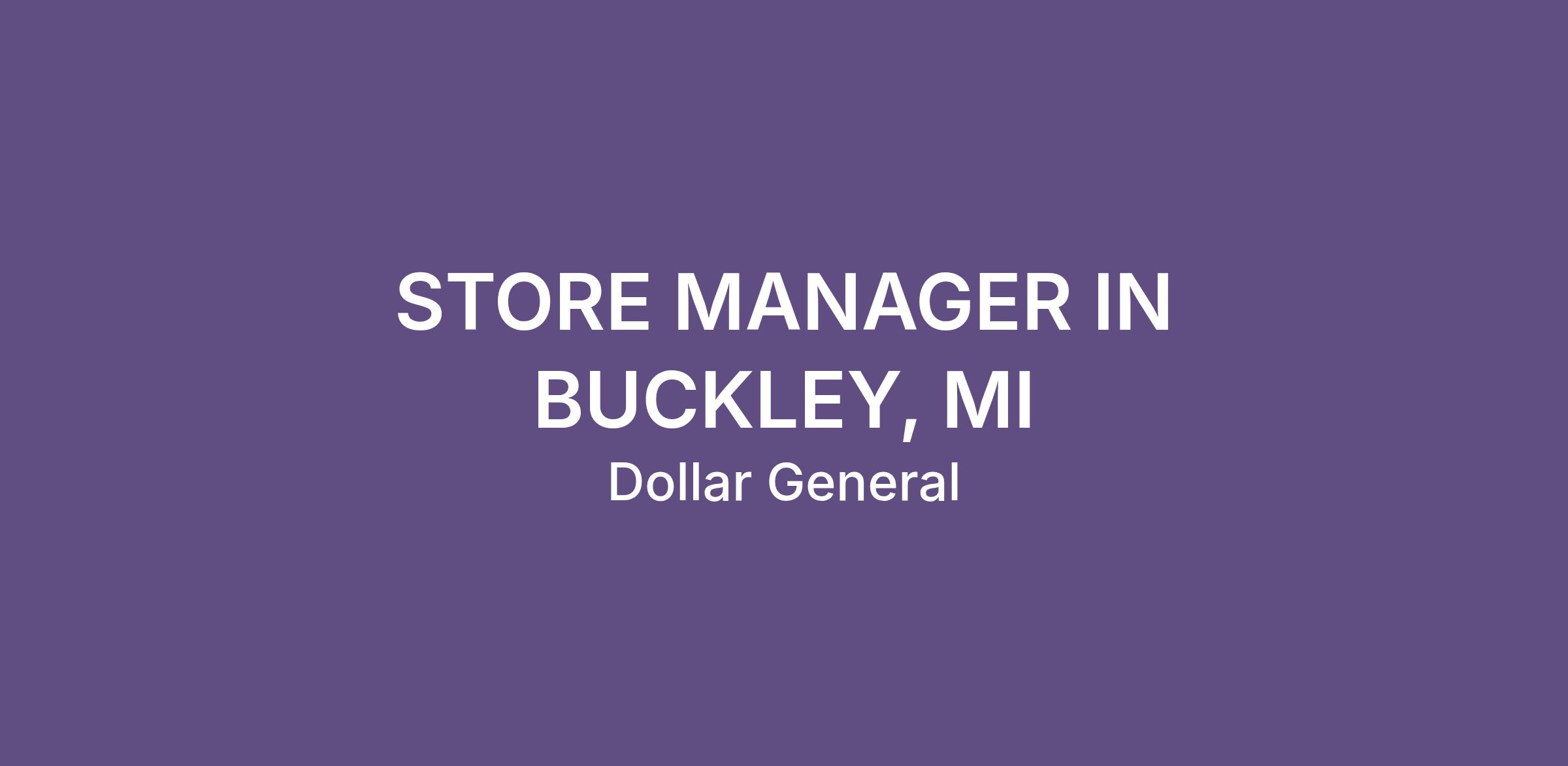 STORE MANAGER IN BUCKLEY, MI