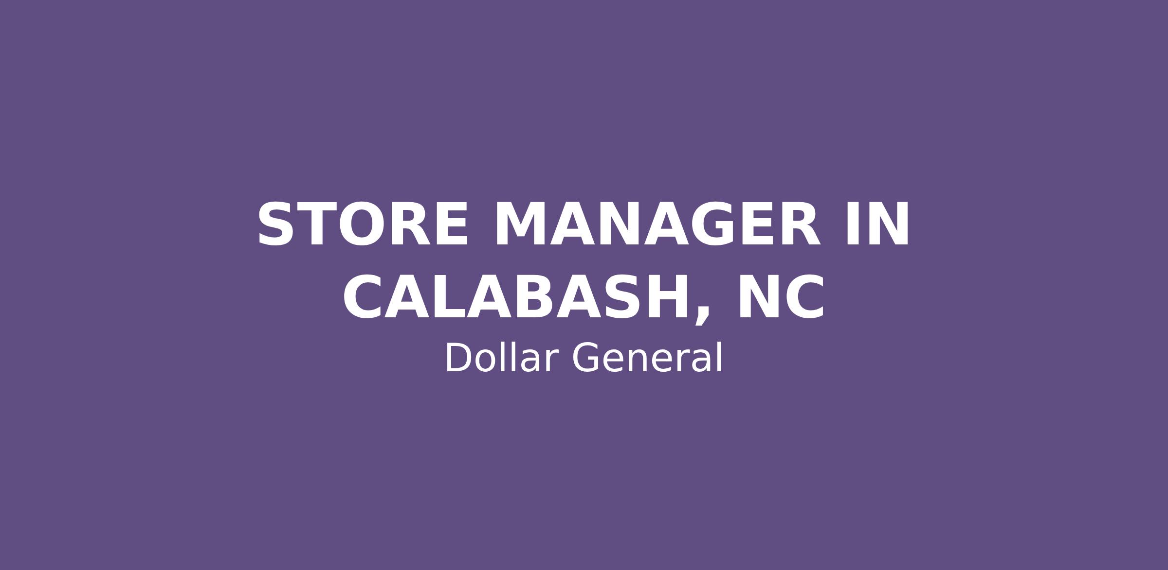 STORE MANAGER IN CALABASH, NC