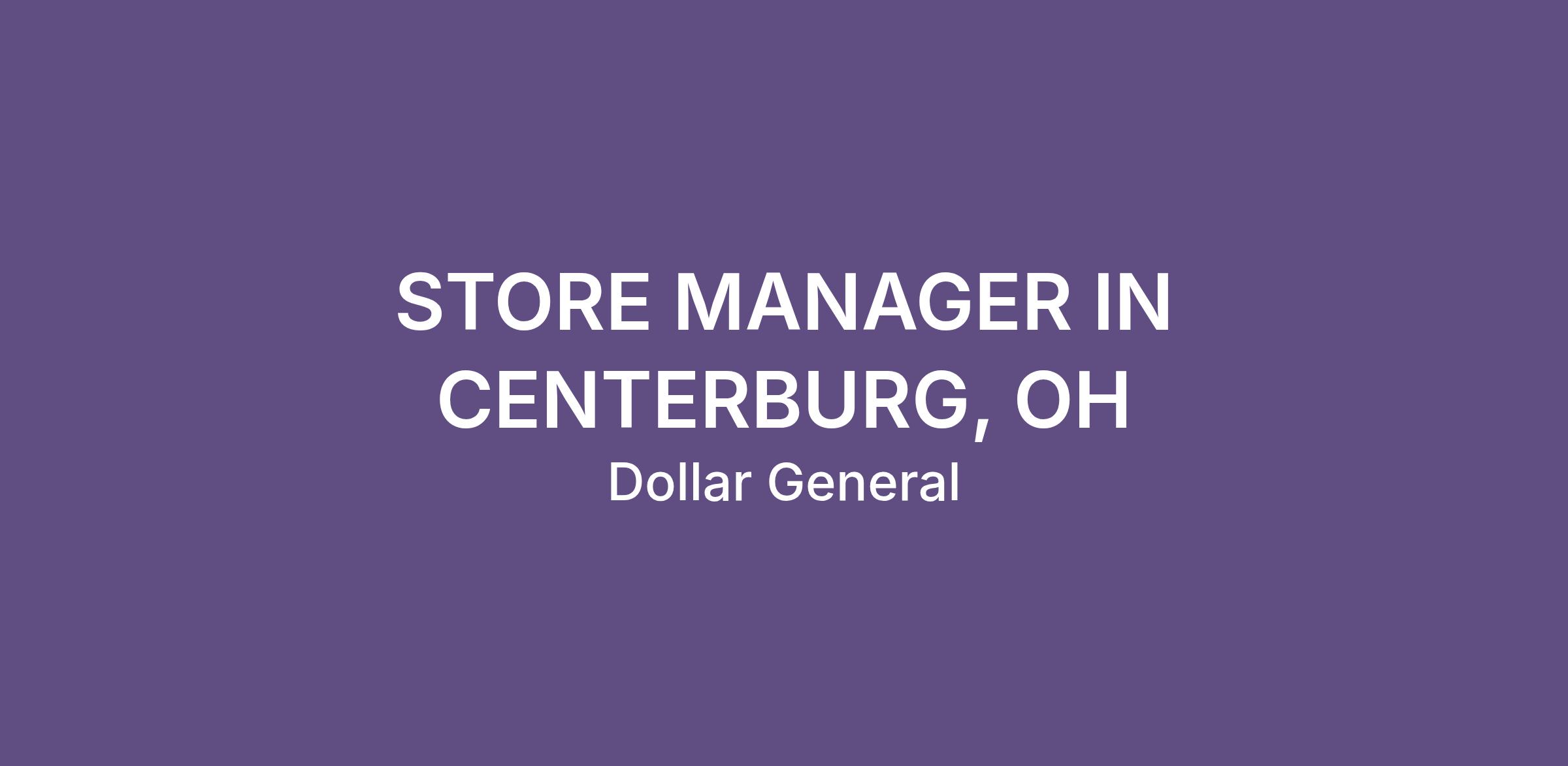 STORE MANAGER IN CENTERBURG, OH