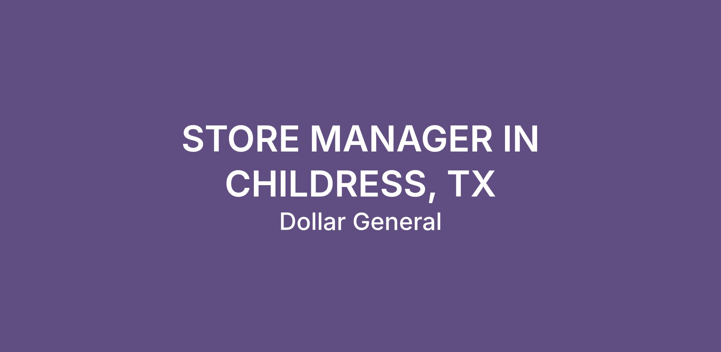 STORE MANAGER IN CHILDRESS, TX