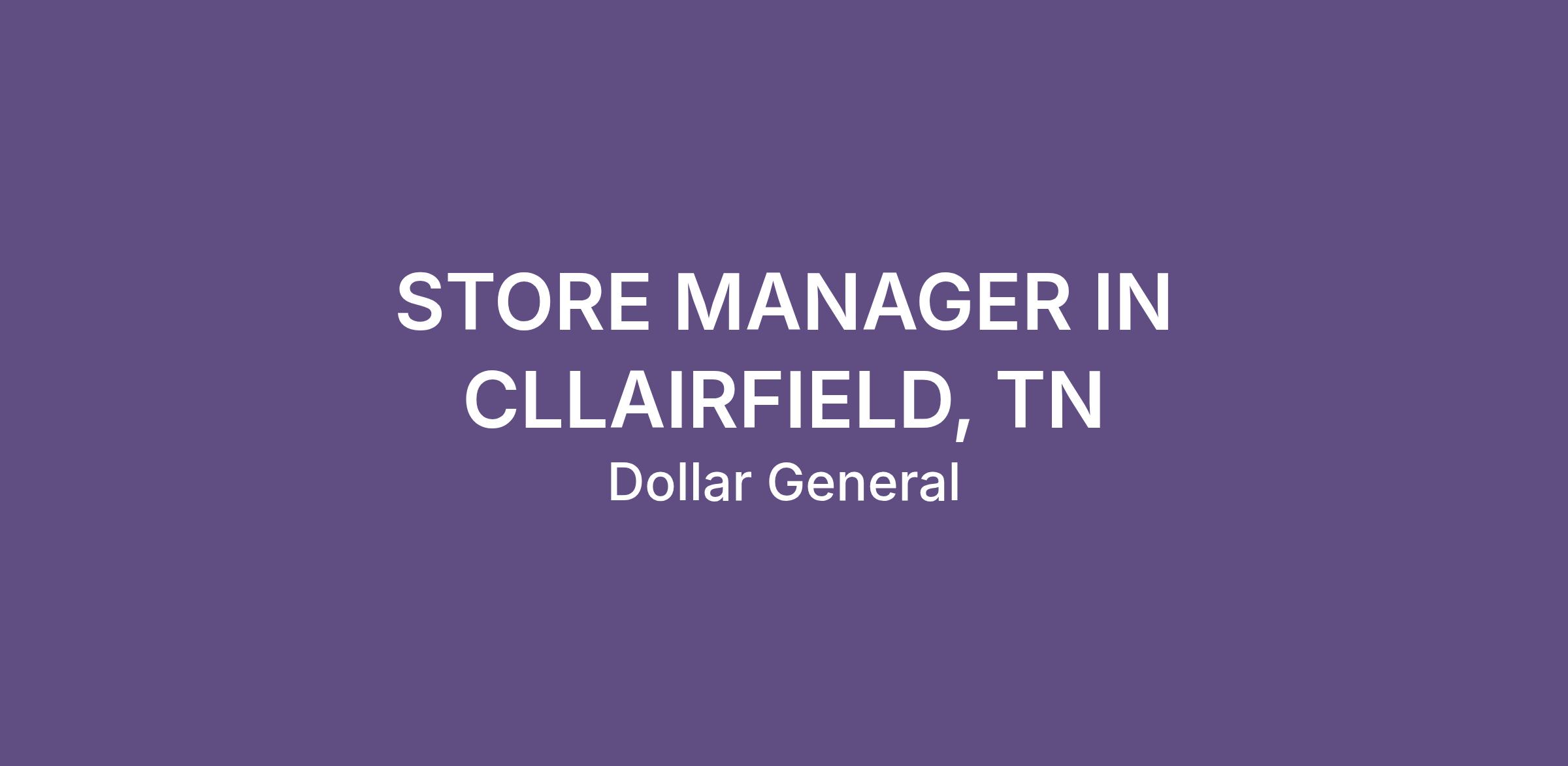 STORE MANAGER IN CLLAIRFIELD, TN