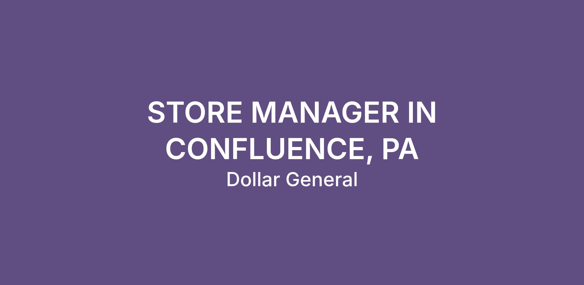 STORE MANAGER IN CONFLUENCE, PA