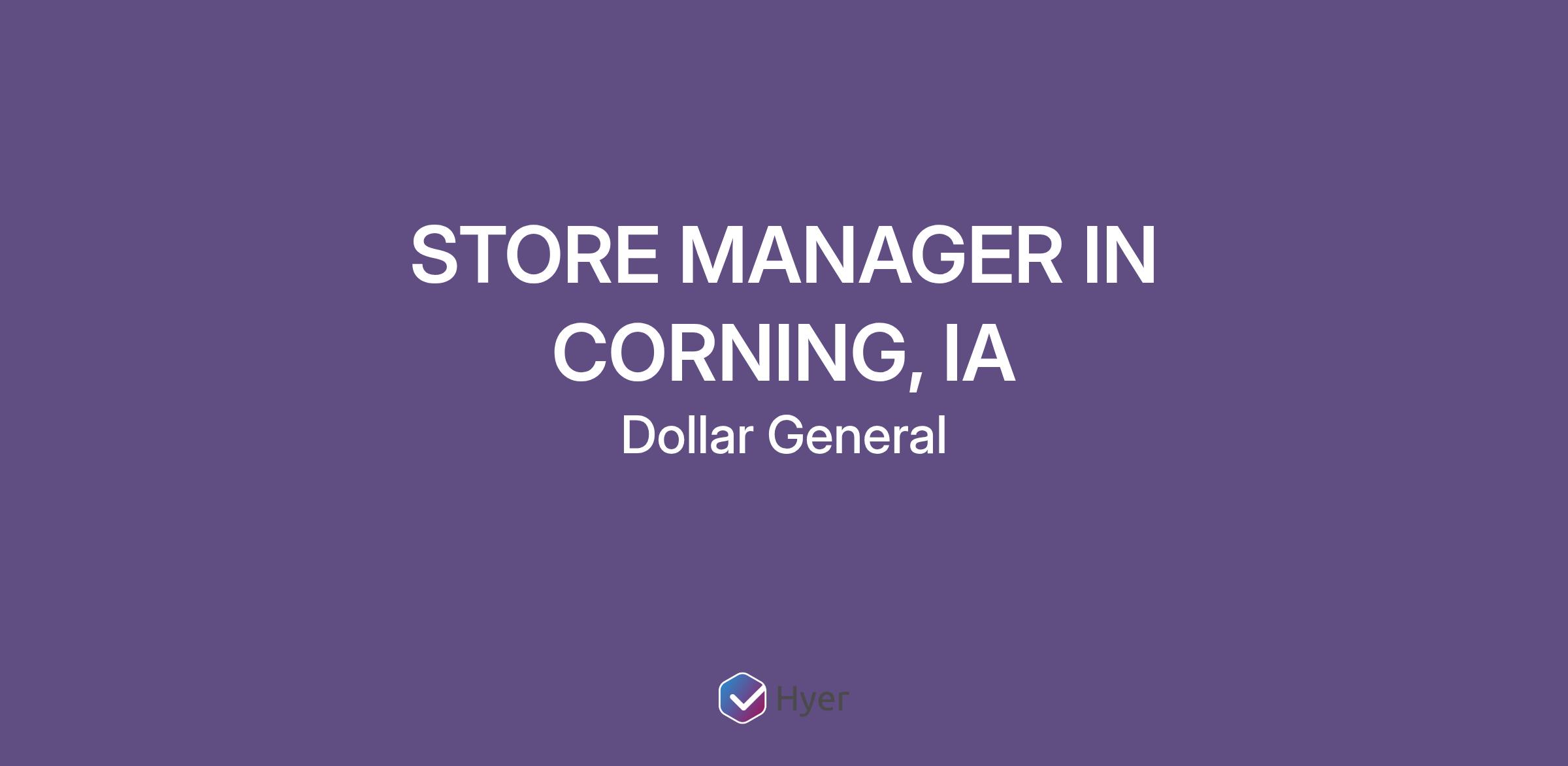 STORE MANAGER IN CORNING, IA