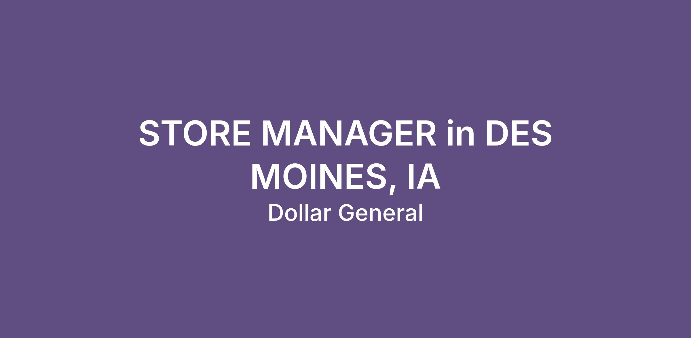 STORE MANAGER in DES MOINES, IA