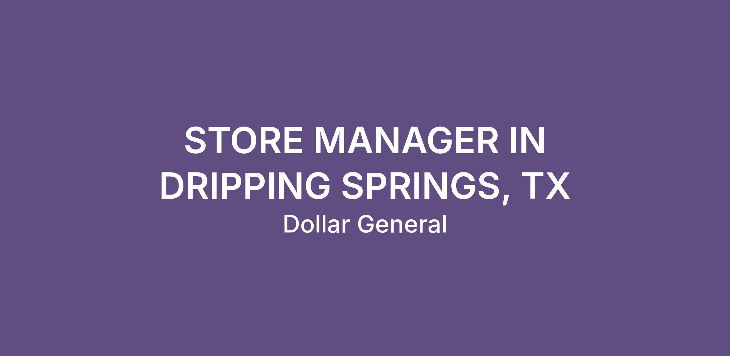 STORE MANAGER IN DRIPPING SPRINGS, TX