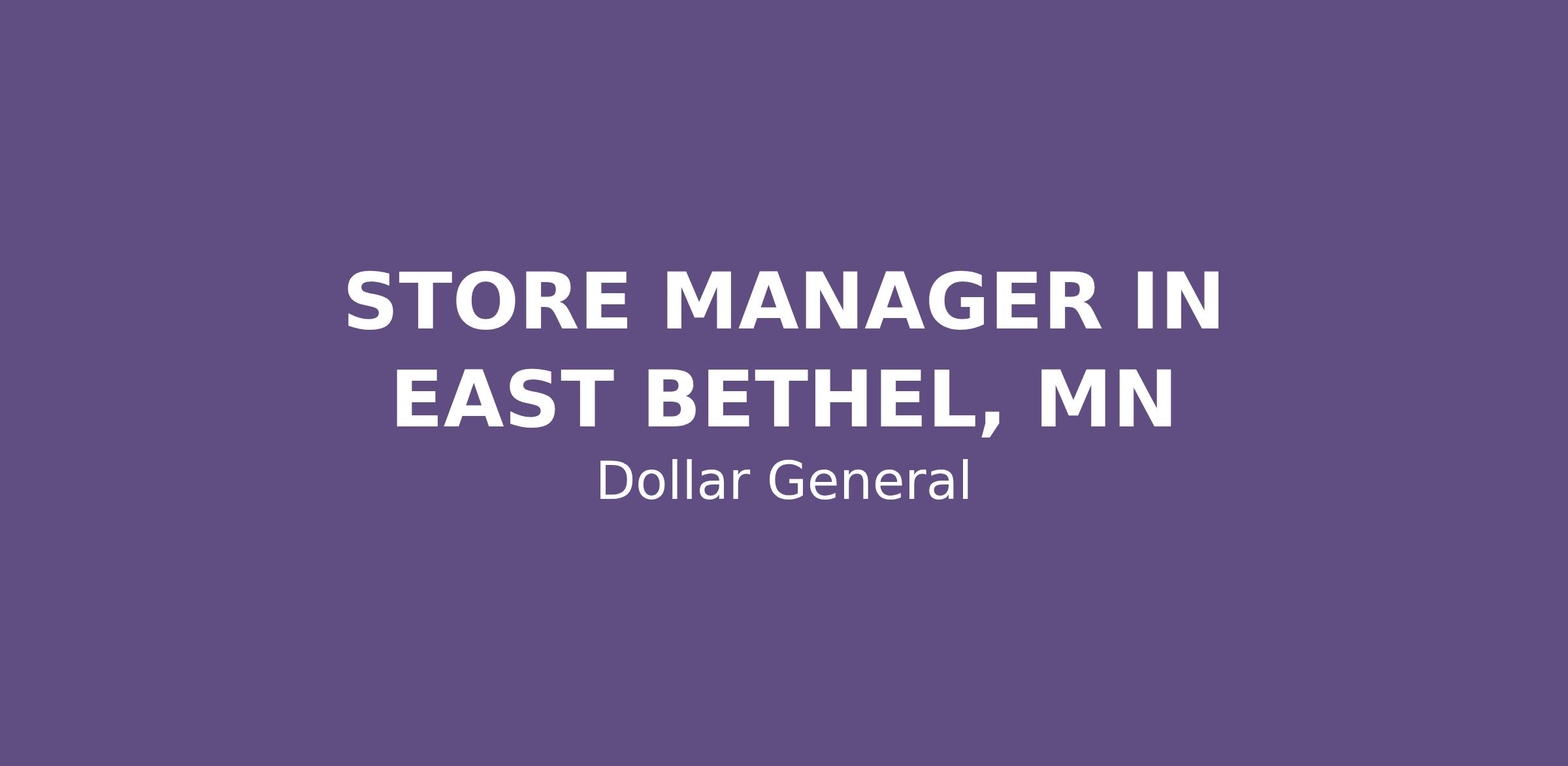 STORE MANAGER IN EAST BETHEL, MN