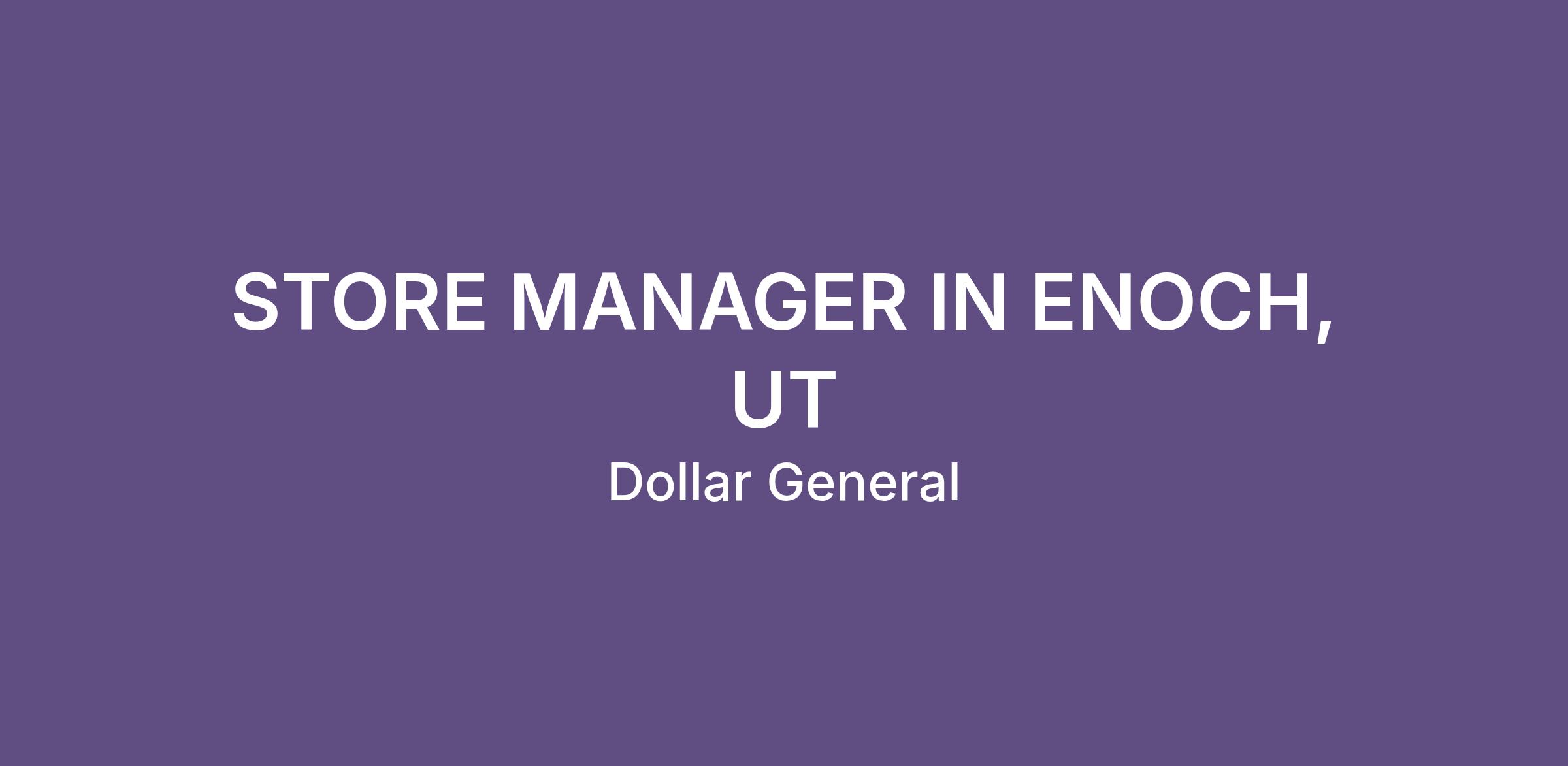 STORE MANAGER IN ENOCH, UT