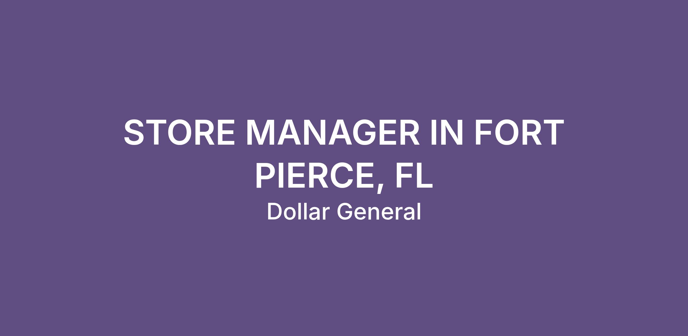 STORE MANAGER IN FORT PIERCE, FL