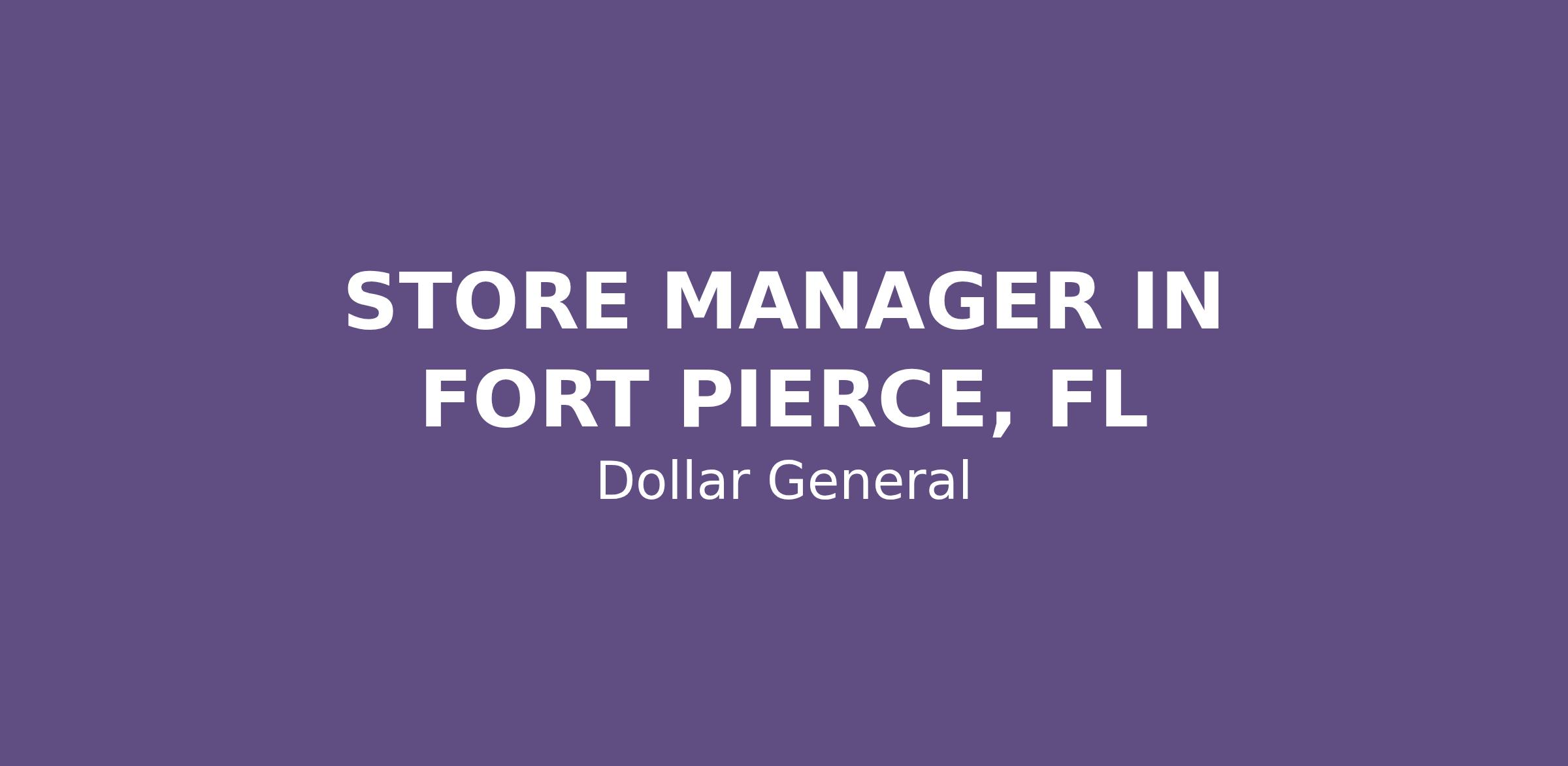 STORE MANAGER IN FORT PIERCE, FL