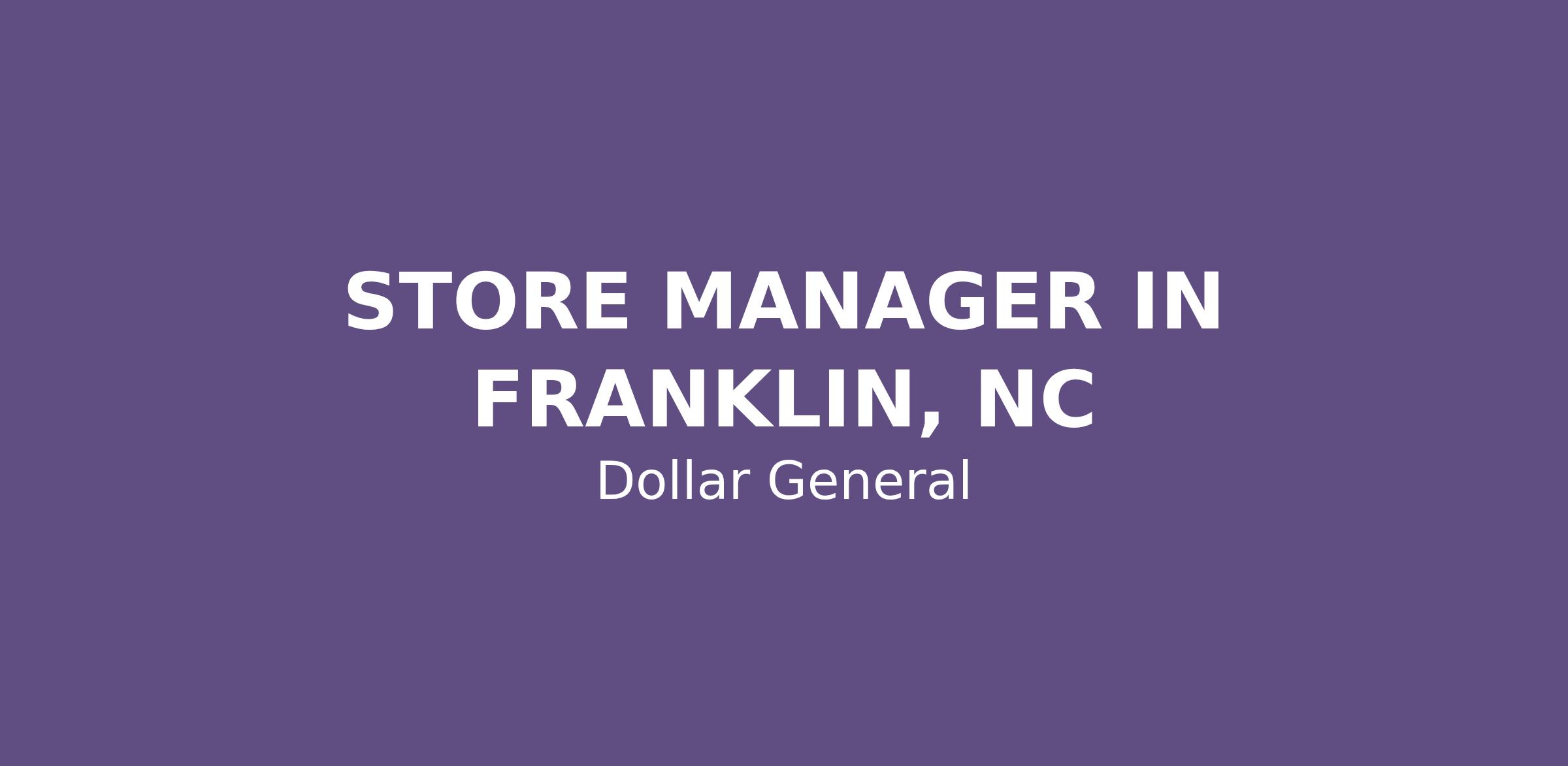 STORE MANAGER IN FRANKLIN, NC