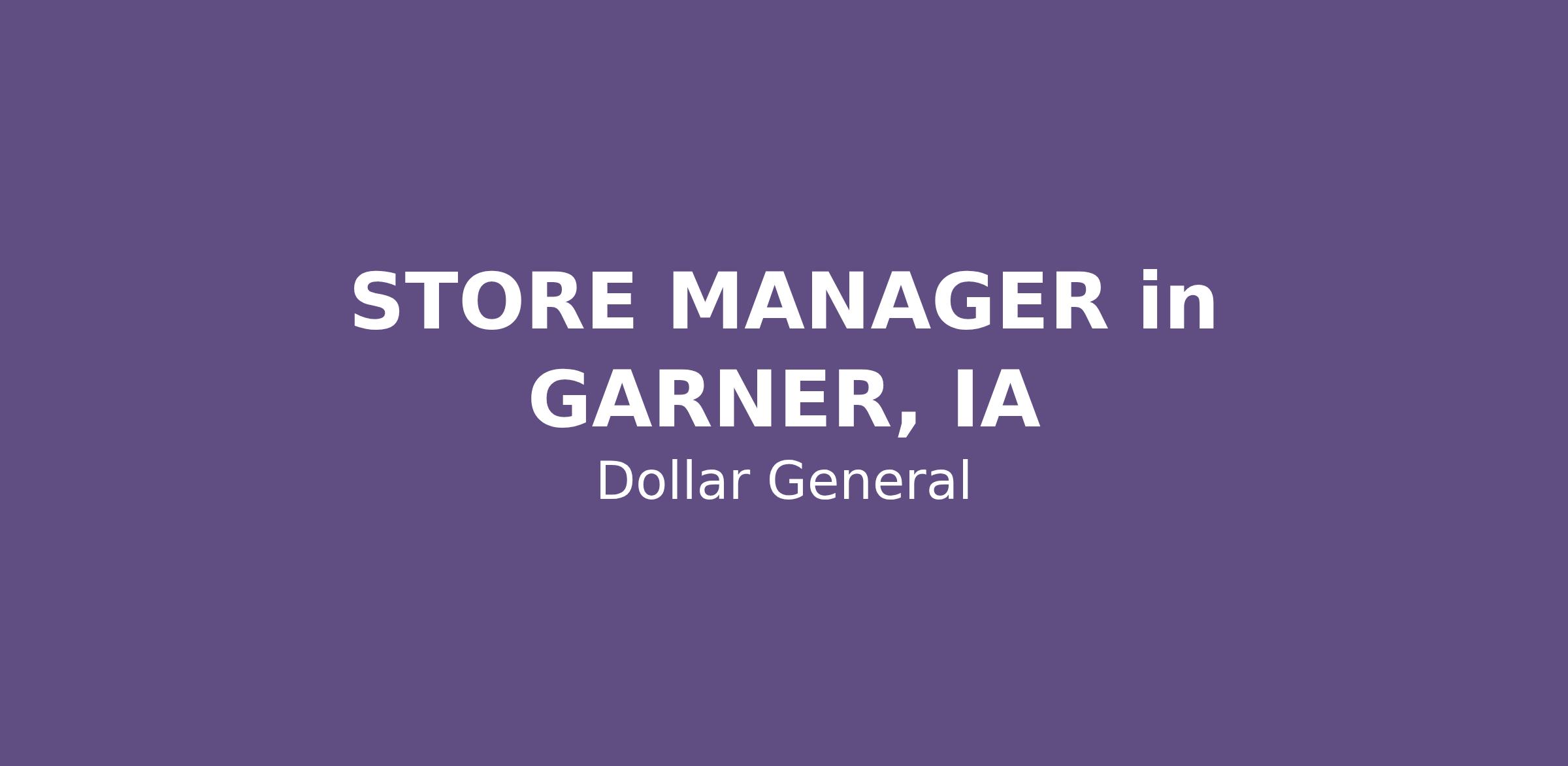 STORE MANAGER in GARNER, IA