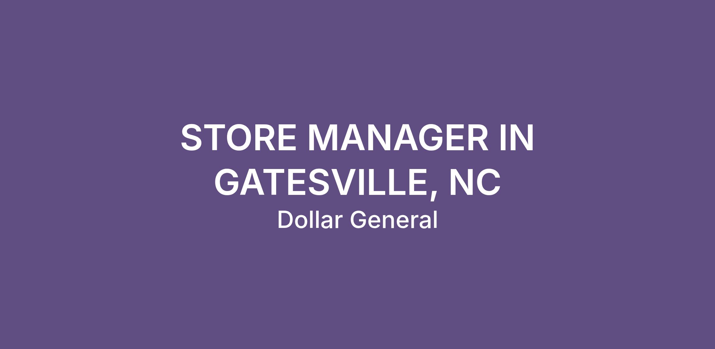 STORE MANAGER IN GATESVILLE, NC