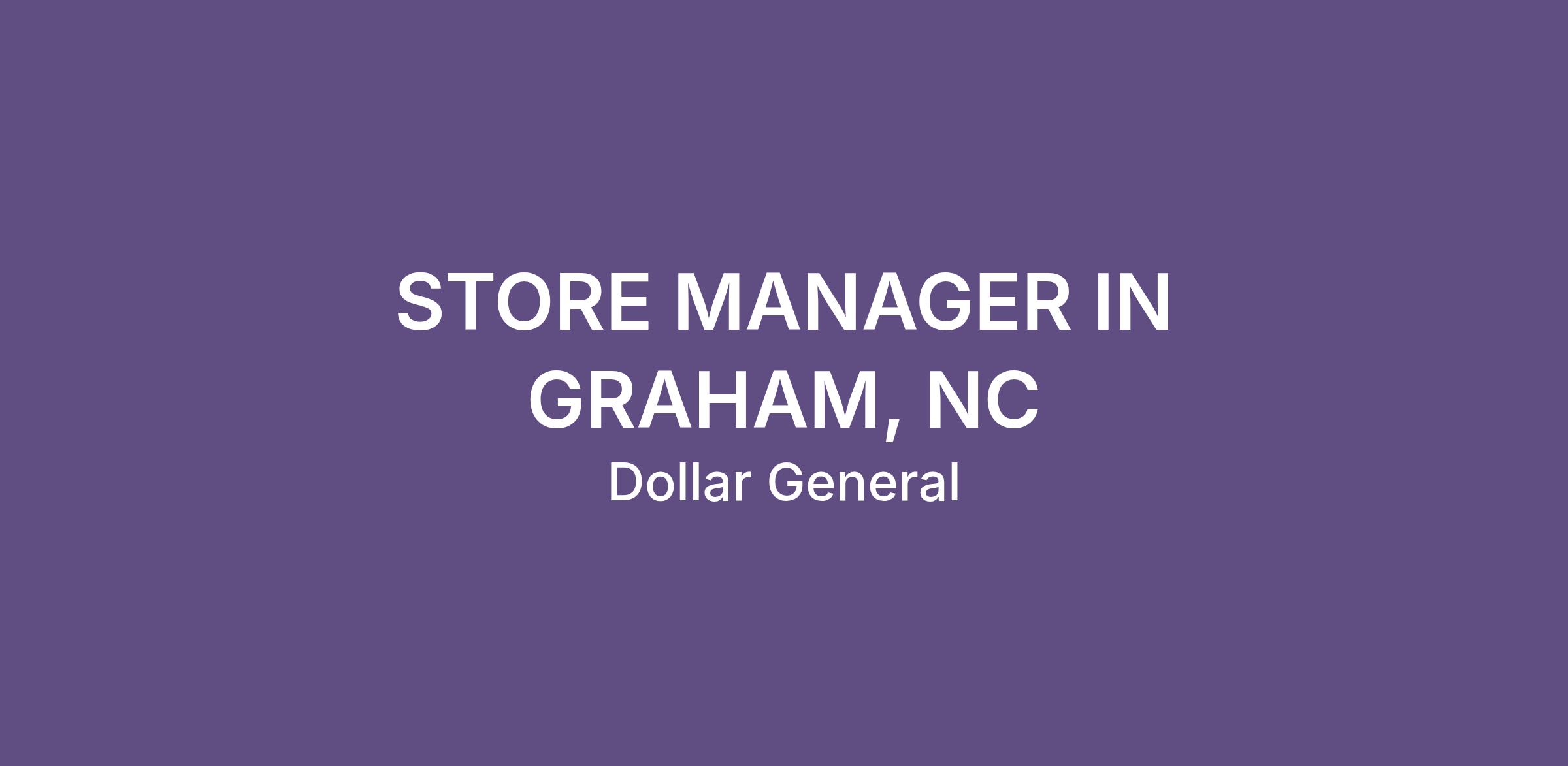 STORE MANAGER IN GRAHAM, NC