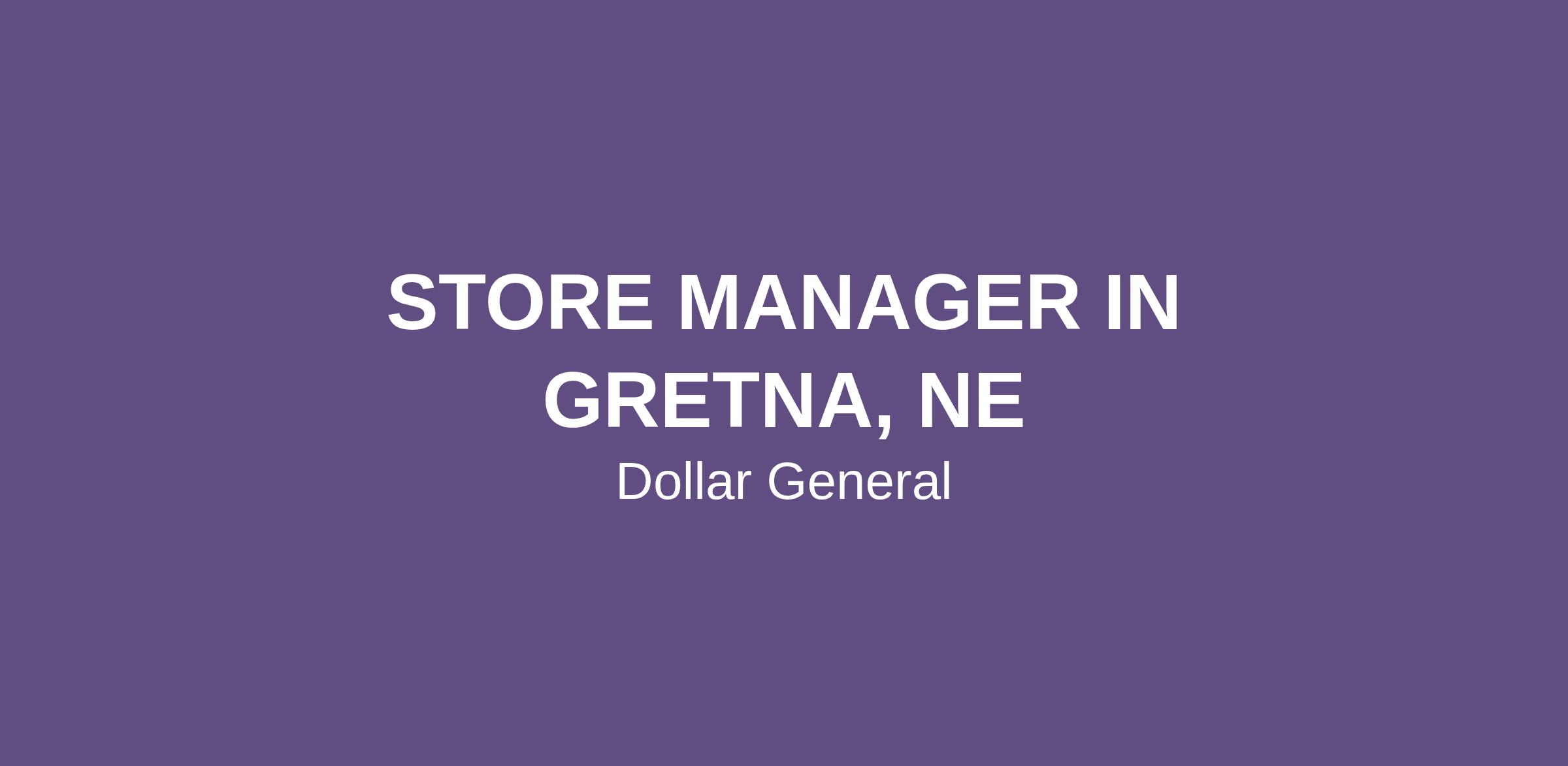 STORE MANAGER IN GRETNA, NE