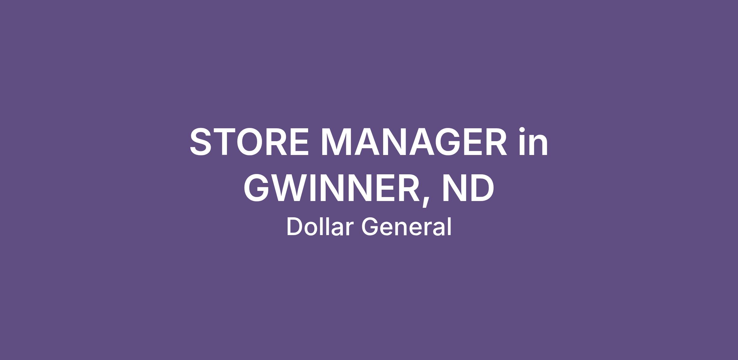 STORE MANAGER in GWINNER, ND